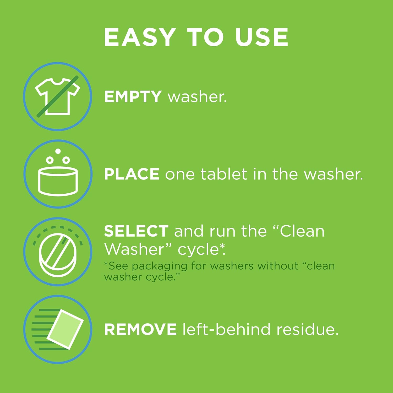 - Extended cleaning with time-release tablets. Recommended by** Whirlpool, Maytag and Amana brands