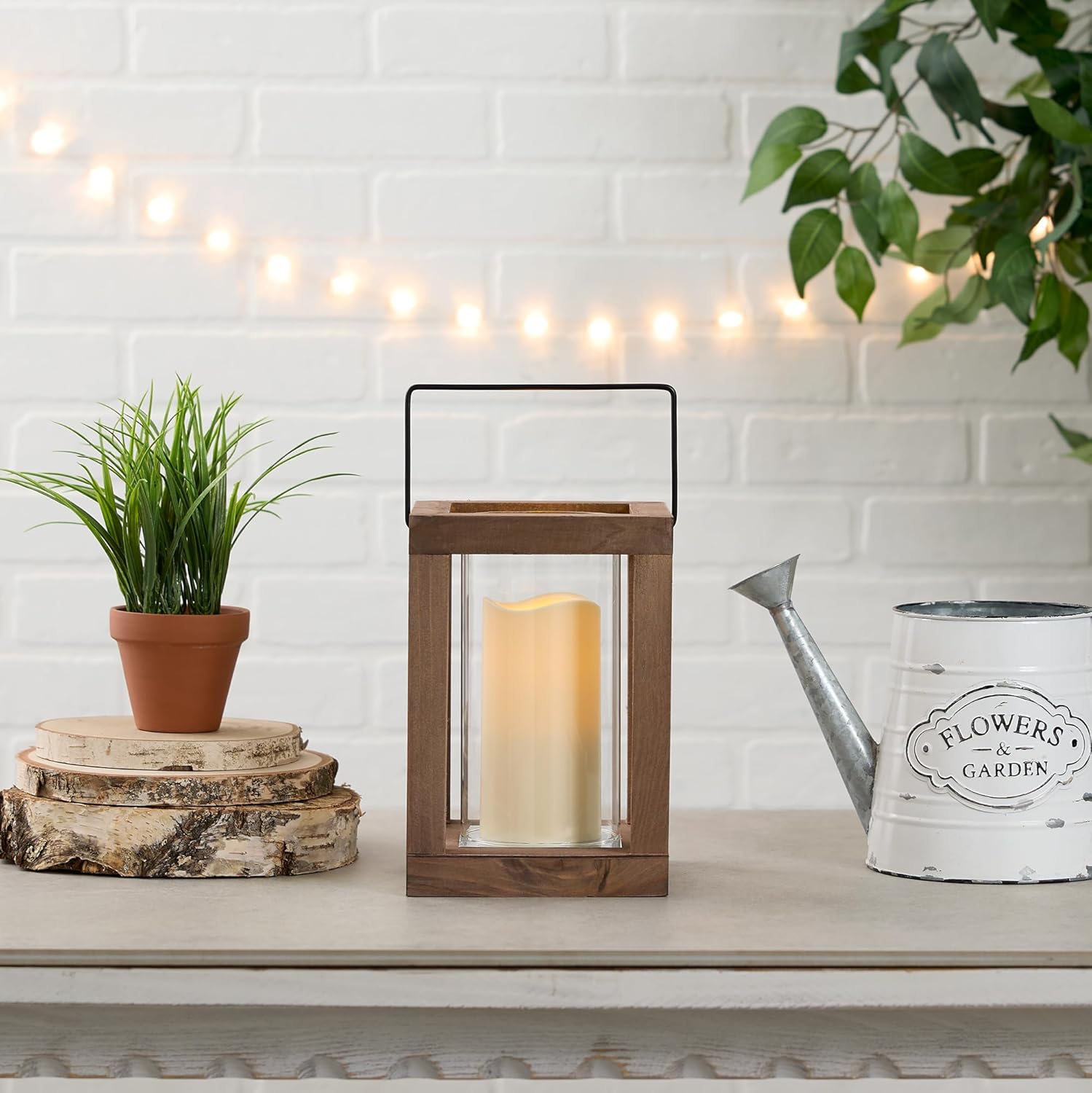 - Lantern will cast beautiful light wherever you display it, inside or outside; removable glass and wood panel allows the easy replacement of your choice of candle or LED to light up the space and create a memorable home decor piece
