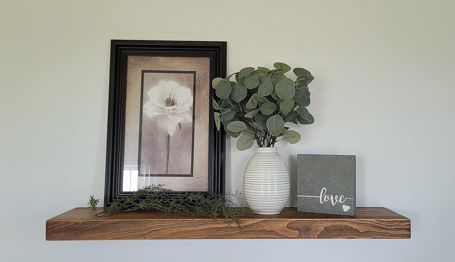 - Elevate Your Space with Rustic Charm: Transform your living room or any space with our large floating shelves for wall. These 24 inch floating shelf beauties, crafted from natural wood, add a touch of rustic warmth and provide ample display space for your cherished items.