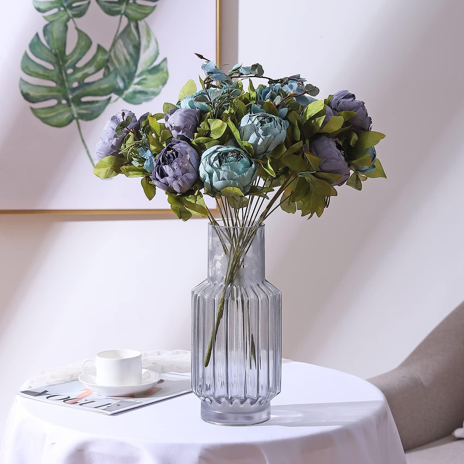 Duovlo Fake Flowers Vintage Artificial Peony Silk Flowers Wedding Home Decoration,Pack of 1 (New Grey Blue)