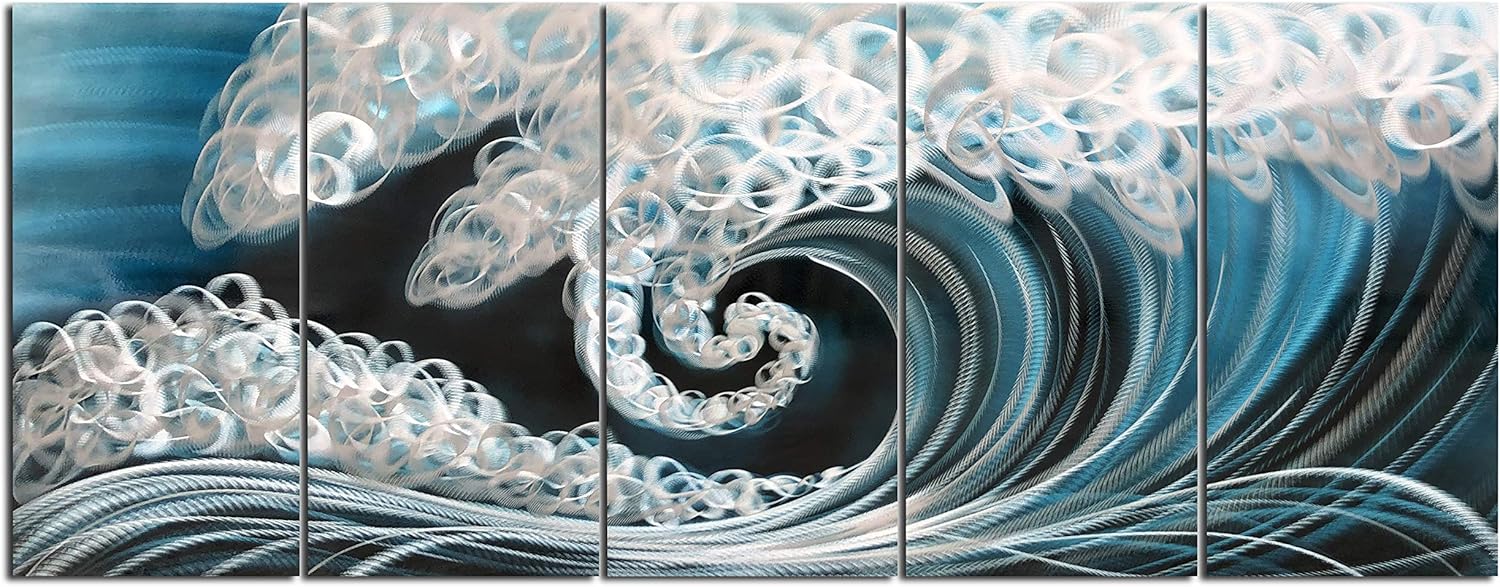 - SZIE: Sea Metal Wall Art 24x64IN (Total 5 Panels).
