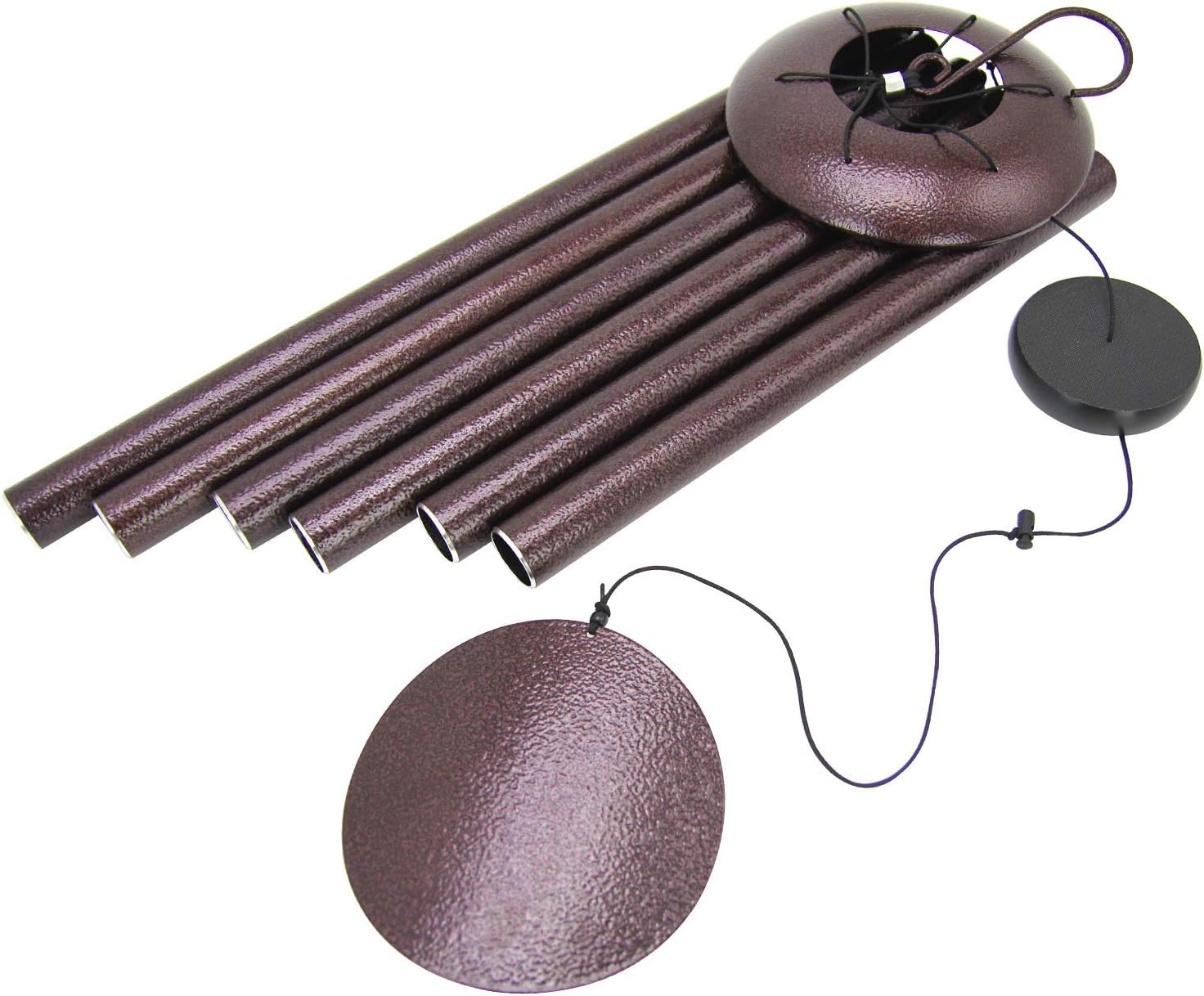 - Metal Wind Chimes - The metal wind chimes is made entirely of aluminum ,not only the six tubes,also the hook,the top part and the wind chimes pendulum,all durable anodized bronze finish.Thick tubing wall creates a longer lasting deep tone.Each tube is precision tuned to pentatonic scale.
