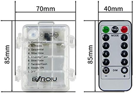 • Lighting 8 modals: fairy lights battery with remote control of 8 modals with different light types: wave-type change, continuous change, change of flicker, single light gets brighter and darker, slow-flash change, dreamlike change, burst flash, always bright.