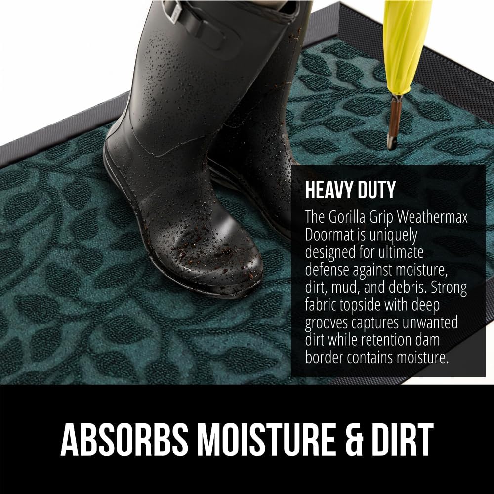 • THE ORIGINAL WEATHERMAX ALL SEASON DOORMAT: Gorilla Grip's Original WeatherMax doormat is built tough with a heavy duty, yet soft and flexible construction; deep grooves, beveled rubber border and retention dam help capture dirt, debris and moisture
