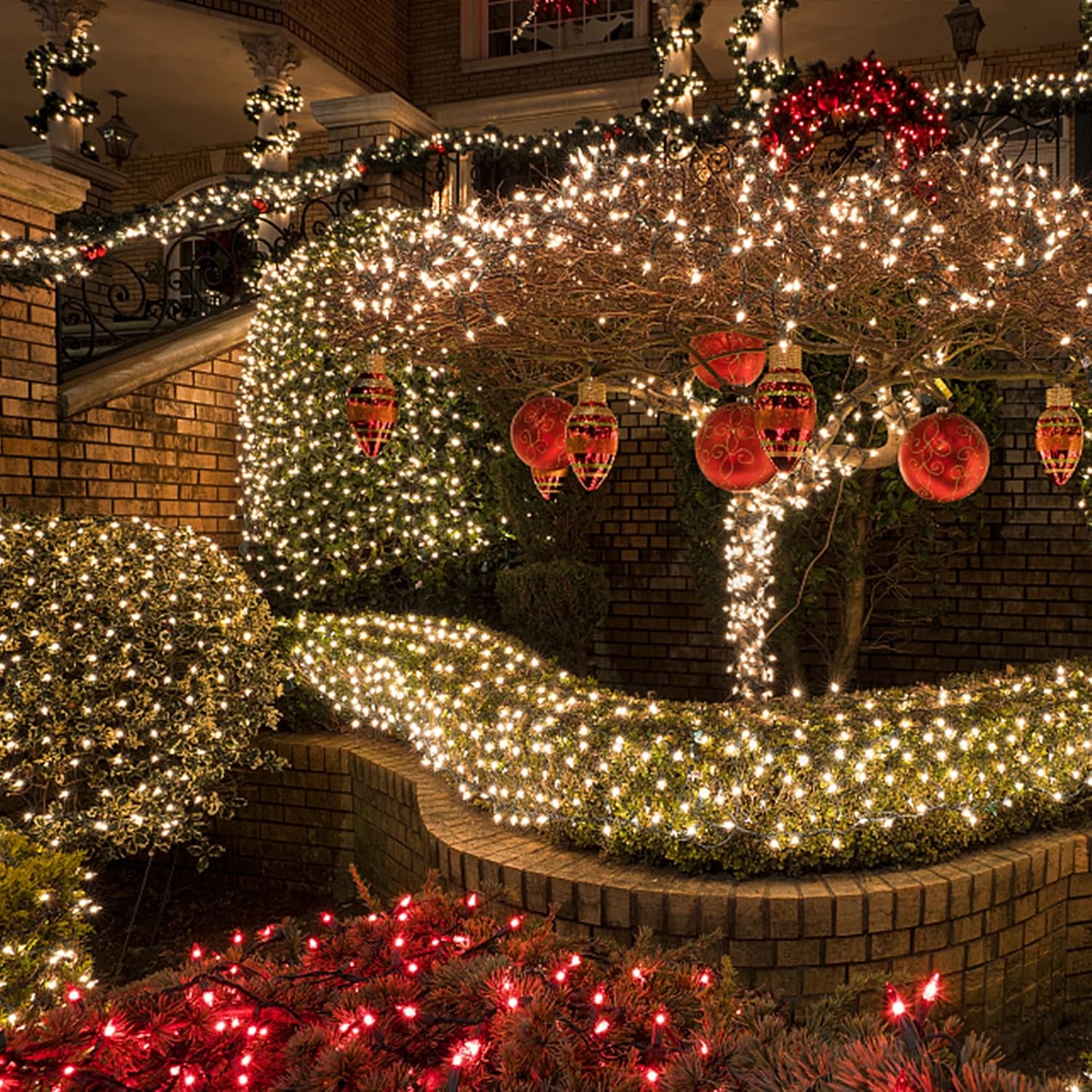 • 66ft Christmas string lights with 200 warm white individual LED bulbs. Each Christmas lights has end-to-end connection, you can connect up to 4 sets together to illuminate a wider range.