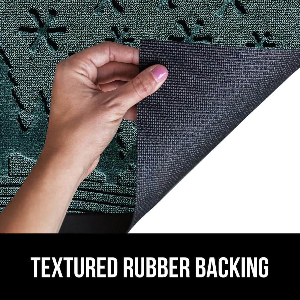 GORILLA GRIP 100% Waterproof All-Season WeatherMax Doormat, 47x35, US Designed Natural Rubber, Stain and Fade Resistant, Low Profile Indoor Outdoor Door Mats, Easy Clean Patio Mat, Green Snowscape