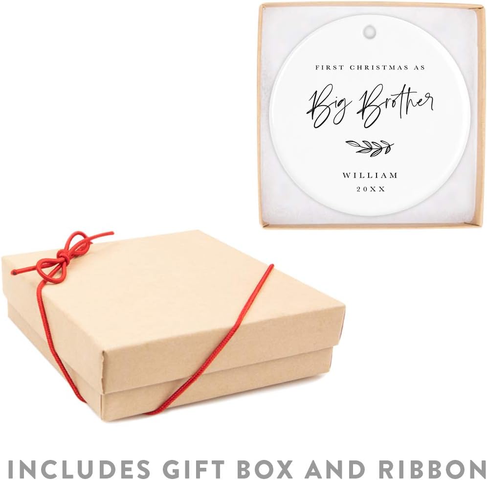 Andaz Press Personalized Sibling Round Ceramic Porcelain Christmas Tree Ornament Keepsake Collectible Gift, First Christmas as Big Brother William 2025, Antique Handdrawn, 1-Pack