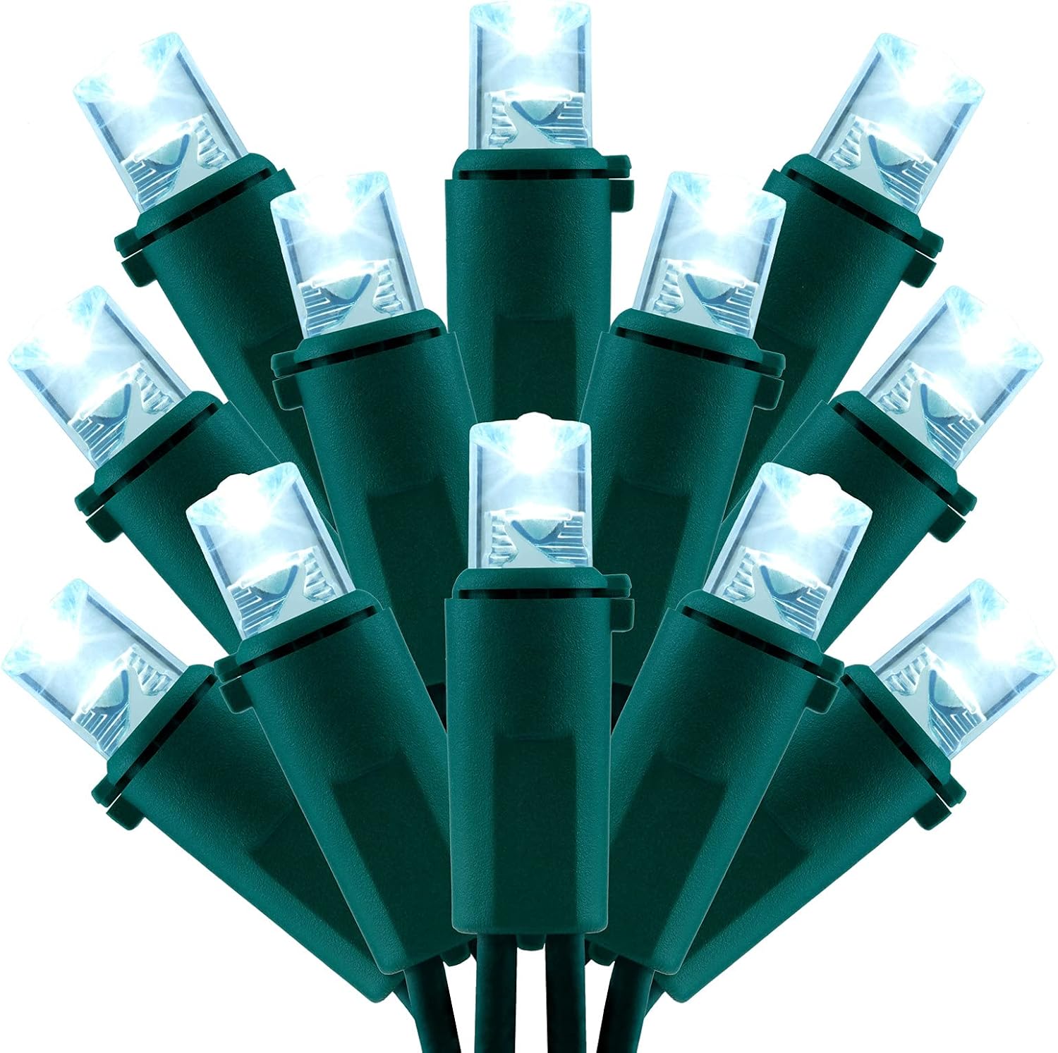 - Bright Cool White β Featuring 200 cool white 5mm LED bulbs, , with 4-inch spacing, bright and pristine white color that doesn't glow bluish, creates a cozy and festive ambiance. The wide angle bulbs feature multi-angle light source technology, providing a wide and even distribution of light. The independent light heads allow the light to diverge at multiple angles, ensuring that no corner of your Christmas tree or garden goes unnoticed.