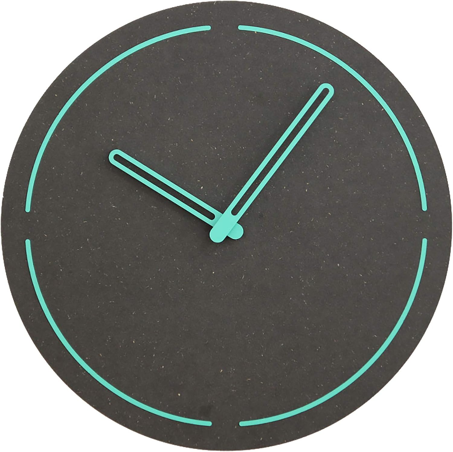 - Measures 10.25βX 10.25β and features a misty black FORESCOLOR ecoboard dial that is 0.2β thick. The teal clock hands are made of polished acrylic and the clock face has a matching minimalist design in teal. Operates with 1 AA battery which is not included.