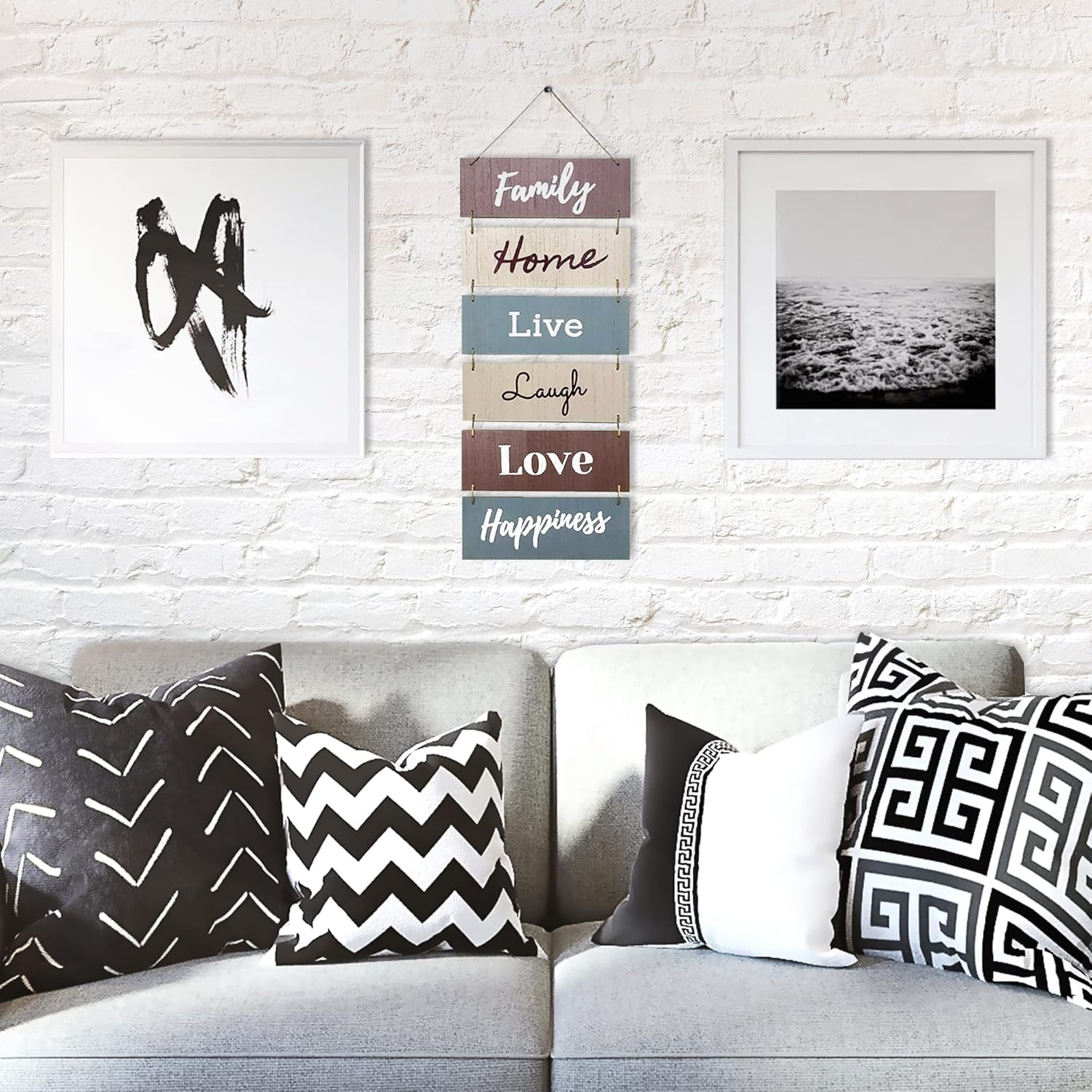 - Rustic Wall Decor This shabby chic wall décor sign brings a unique and elegant touch to your home This sign displays positive words that make you feel at home Family Home Live Laugh Love Happiness This farmhouse decoration has a wooden look that makes a perfect home accessory that is suitable for indoor or outdoor hanging