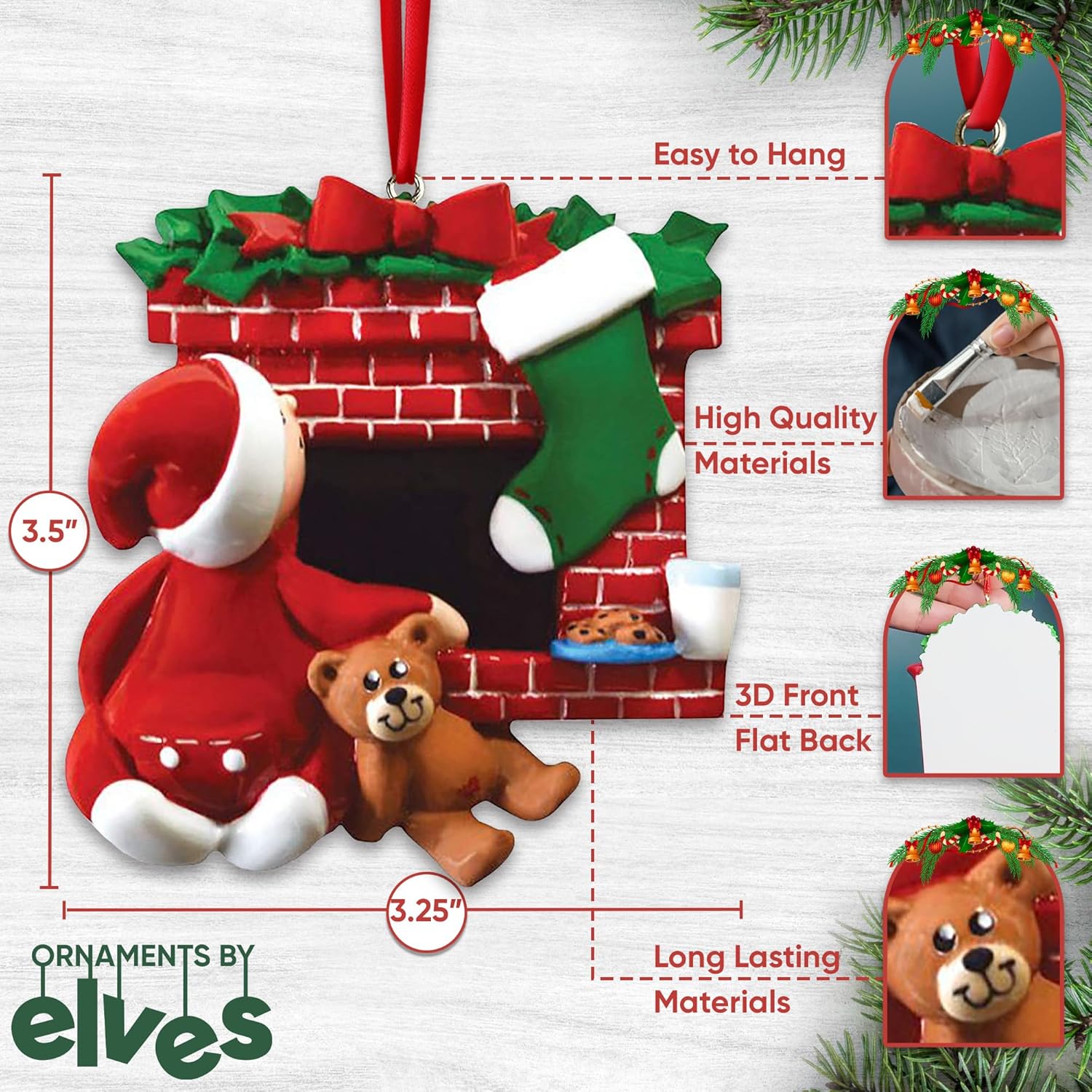 3D Fireplace Toddler Ornaments for Christmas Tree 2025 - Xmas Eve Ornament for Kids Ornament for Girl Personalized Christmas Ornaments for Kids Gifts for Boys Fireplace Toddler Boy Decorations