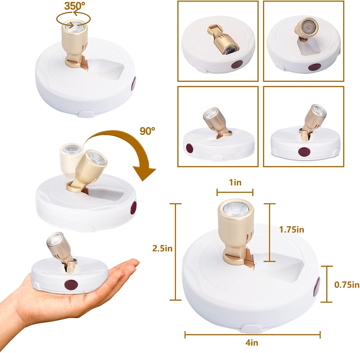 Battery Operated Spotlights, Cordless Picture Light, Dimmable Accent Lighting, Wireless LED Puck Lights, Stick on Lights with Remote for Plant Photo Painting Art Dartboard Portrait