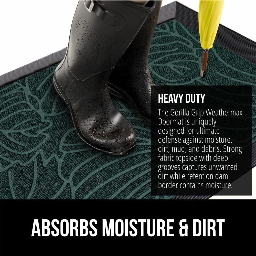 GORILLA GRIP 100% Waterproof All-Season WeatherMax Doormat, 60x24, US Designed Natural Rubber, Stain and Fade Resistant, Low Profile Indoor Outdoor Door Mats, Easy Clean Patio Mat, Green Palm
