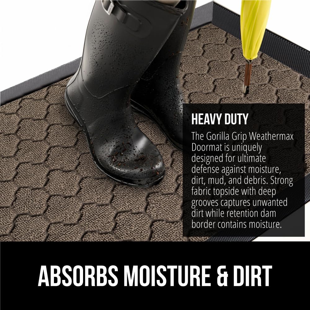 • THE ORIGINAL WEATHERMAX ALL SEASON DOORMAT: Gorilla Grip's Original WeatherMax doormat is built tough with a heavy duty, yet soft and flexible construction; deep grooves, beveled rubber border and retention dam help capture dirt, debris and moisture