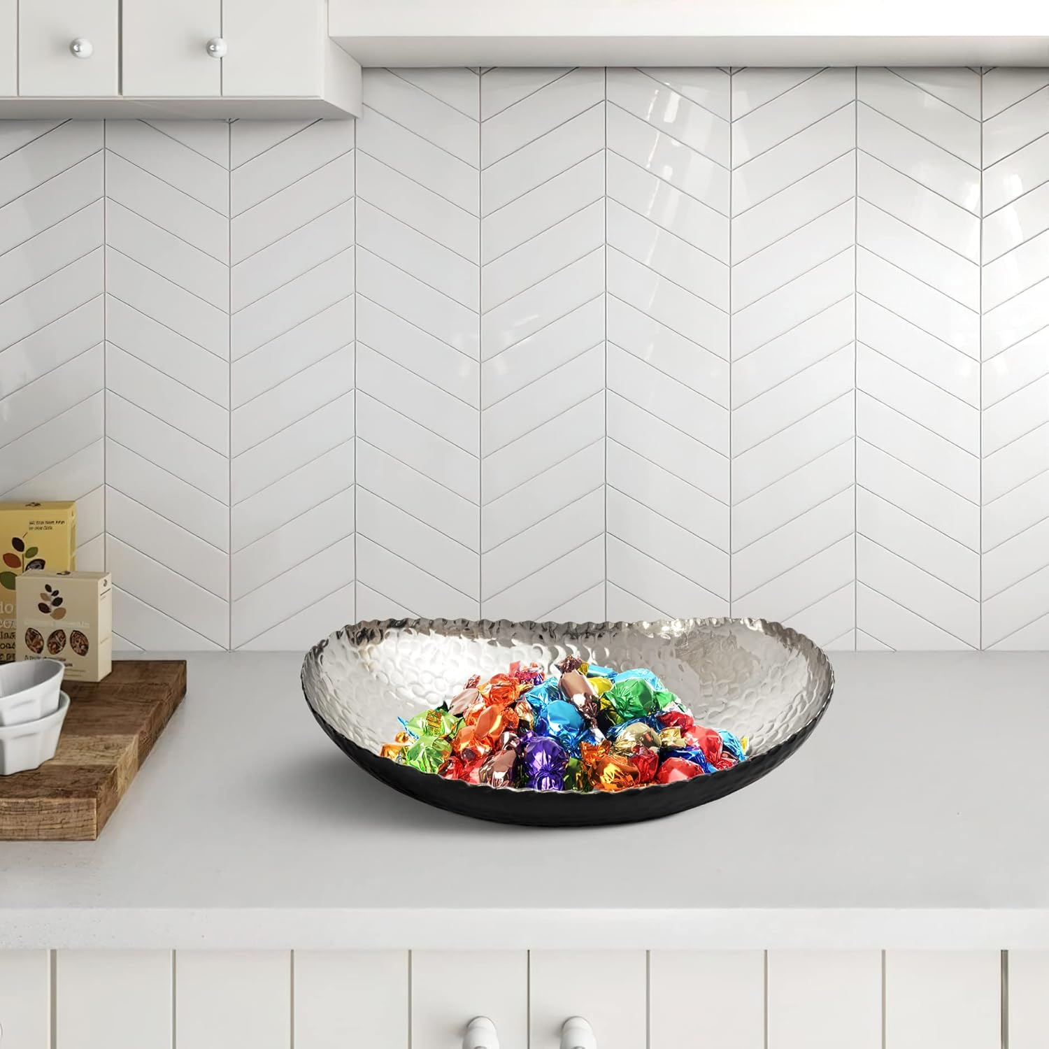- PERFECT SIZE FOR HOME DECOR: Measuring 12.75 x 8.75 x 3.5 inches, this large decorative bowl is ideal for both practical use and stylish display. Great as a modern fruit bowl, decor bowl, or key dish bowl for entryway table—a standout addition to any room. Its hammered design and exquisite finish make it an attractive centerpiece for any kitchen countertop, dining table, or coffee table, adding a touch of sophistication to your home decor.