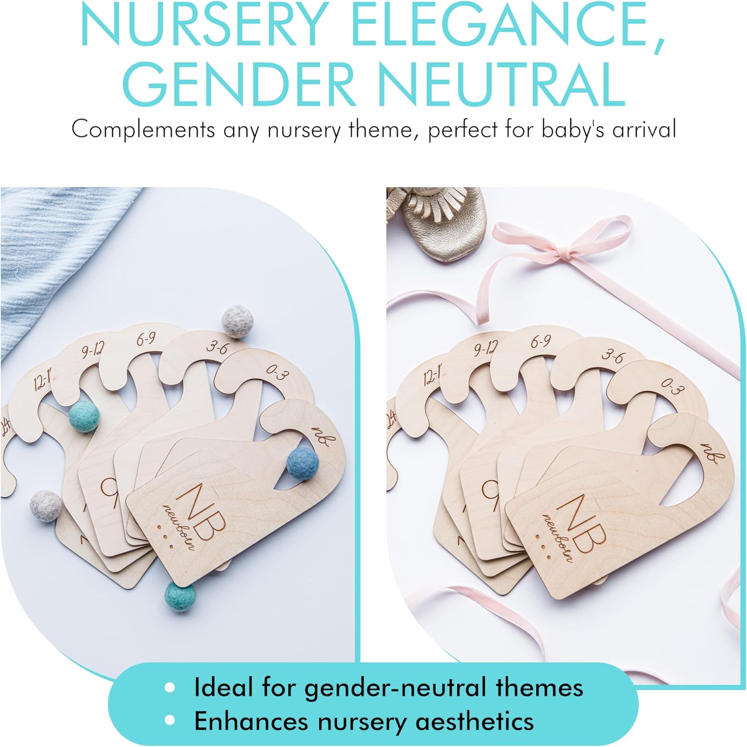 - ORGANIZATION MADE EASY - Organizing your baby's wardrobe is a BREEZE with our baby clothes dividers for closet that cover sizes from newborn to 18-24 months, so you can always sort and arrange baby clothes in order with wooden baby hangers.