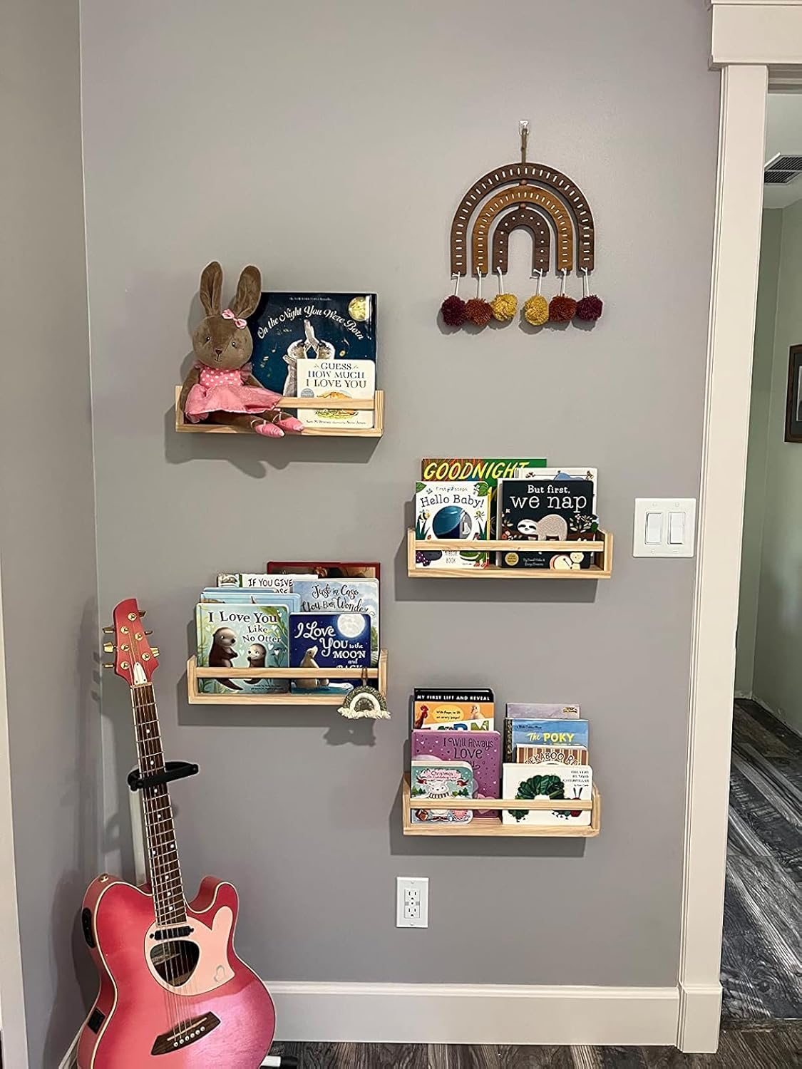 - ✅STURDY CONSTRUCTION – Organize your childrens books, toys, small picture frames, and other decorative pieces with this Nursery Room Wall Shelf Set. It is made with a sturdy, solid wood and has an understated yet functional design that is great for bedrooms, kitchens, and bathrooms