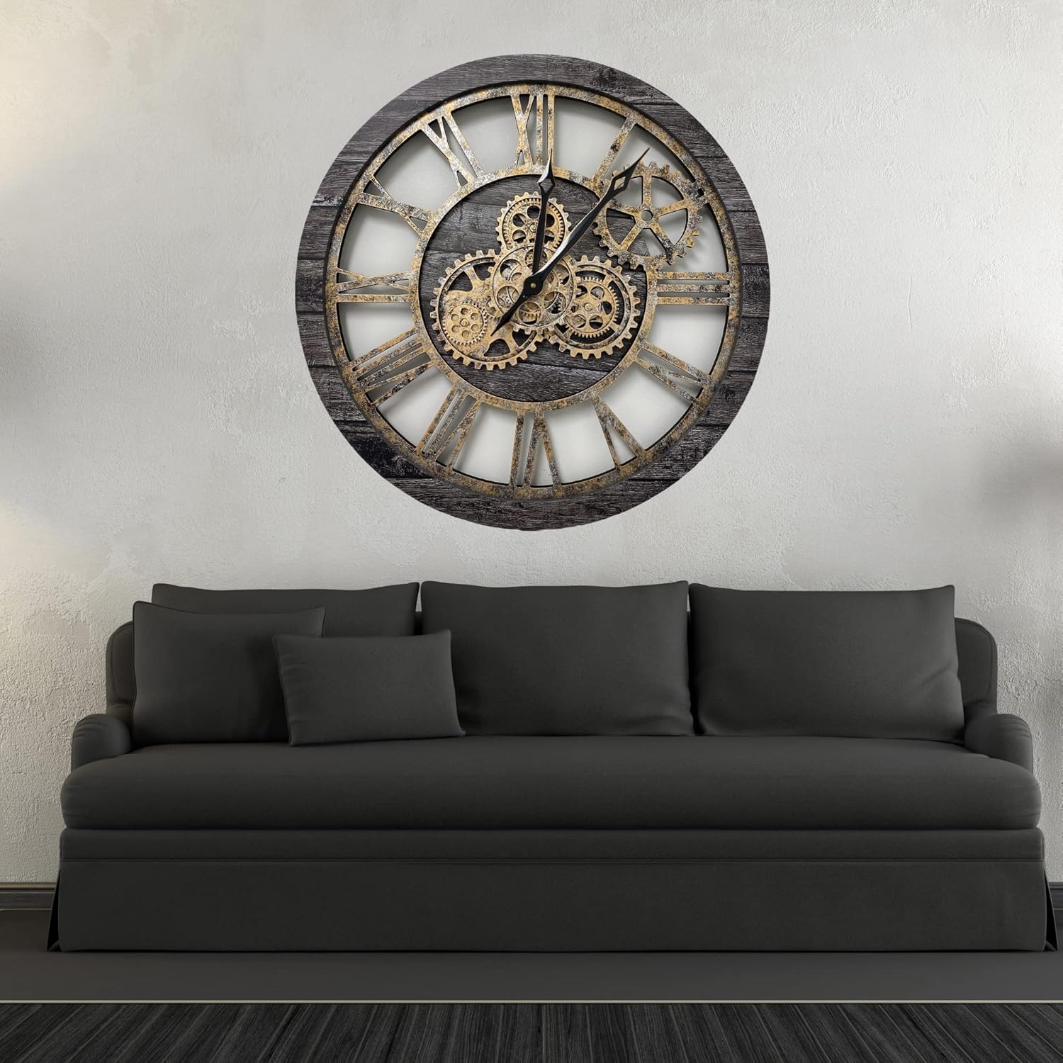 The Gears Clock The Original Real Moving Gear Wall Clock Vintage Industrial Oversized Rustic Farmhouse (24 inch (60cm), Vintage Carbon Grey and Bronze)