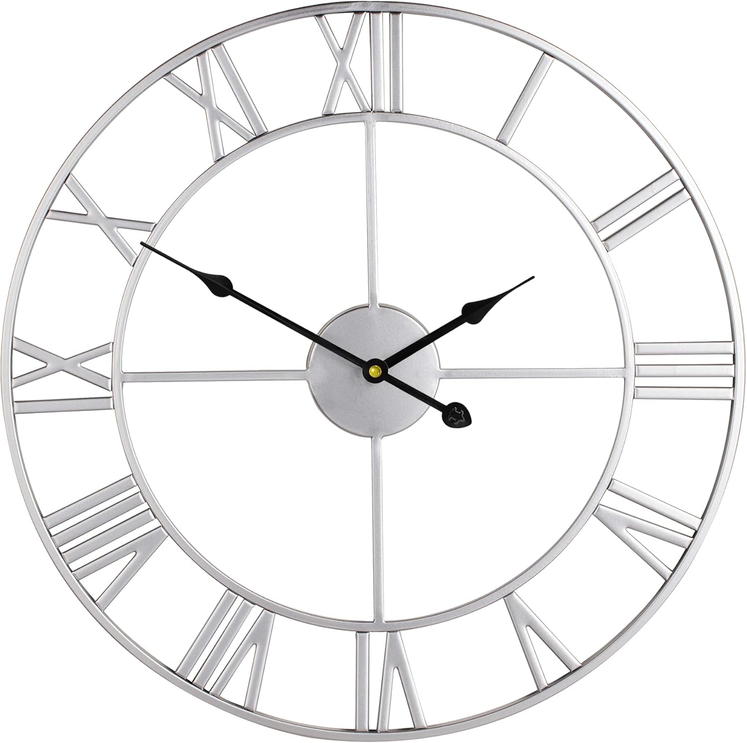 LEIKE 18.5" Modern Large Wall Clocks,Vintage, Round,Silent Non Ticking,Battery Operated,Silver Metal Roman Numerals Clock for Living Room/Bedroom/Kitchen Decor