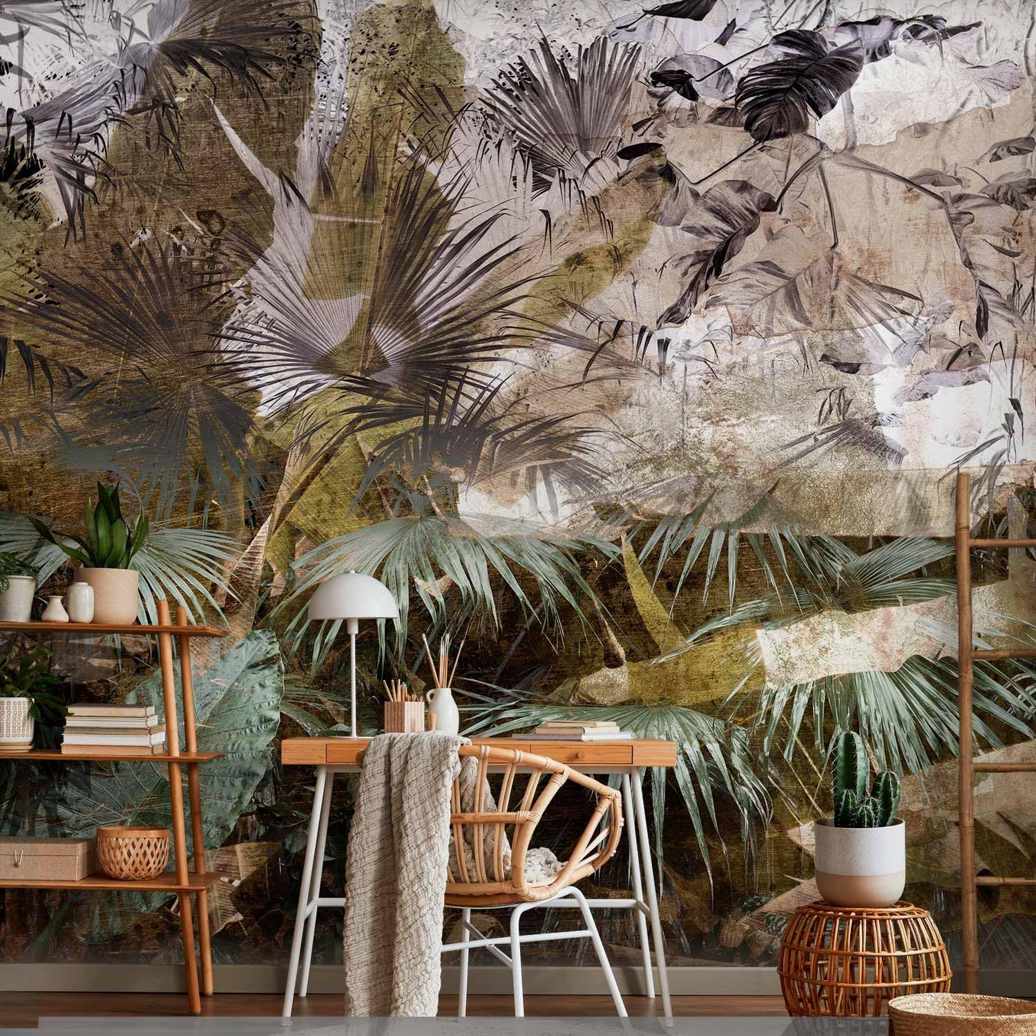 artgeist Wall Mural Tropical Leaves 79x55 in - XXL Non-Woven Wallpaper Fleece Wall Decor Photo Print Picture Image Design Jungle Nature Palm Leaves Like Painted b-C-0789-a-a