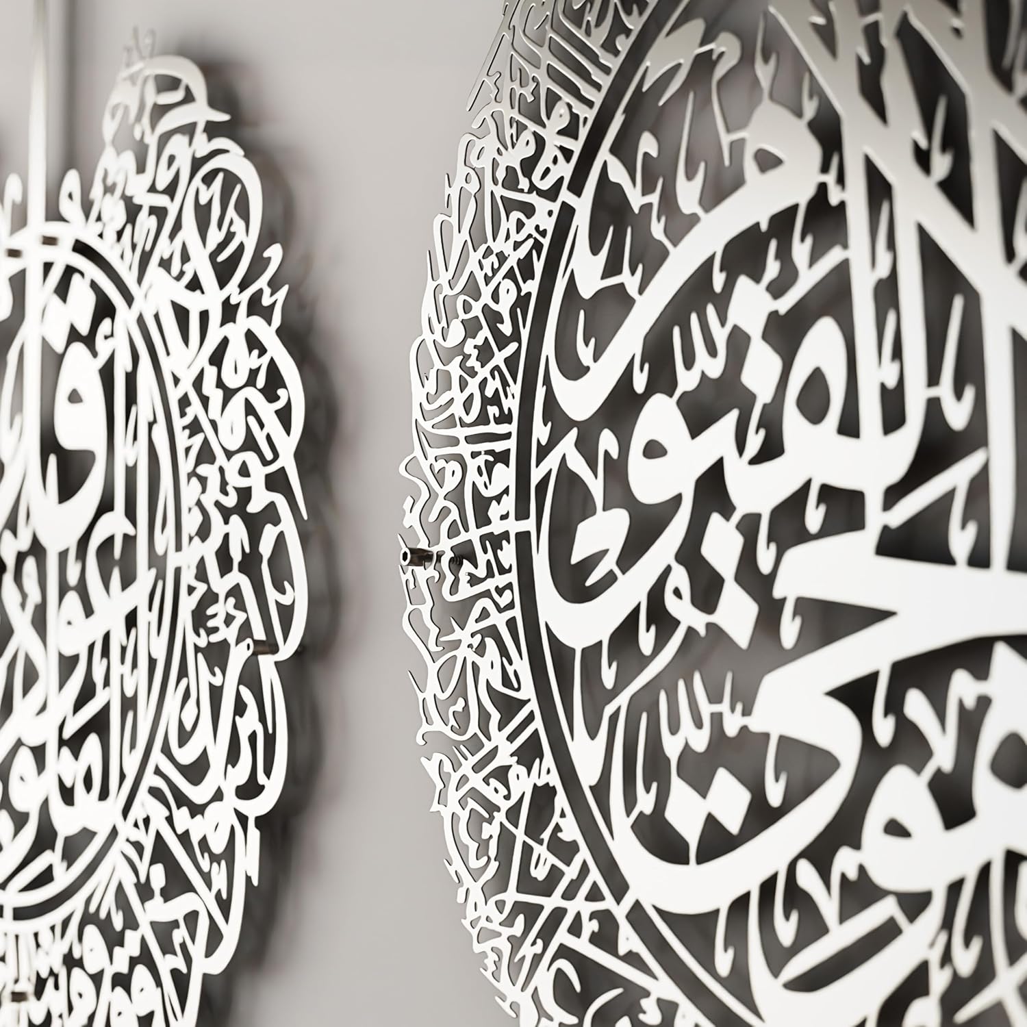 IWA CONCEPT Metal Set of Ayatul Kursi, Surah Al Falaq and Surah An Nas | Islamic Ramadan Wall Decorations | Modern Muslim Housewarming Gift | Calligraphy | Quran Wall Art | (Matte Silver, Large)