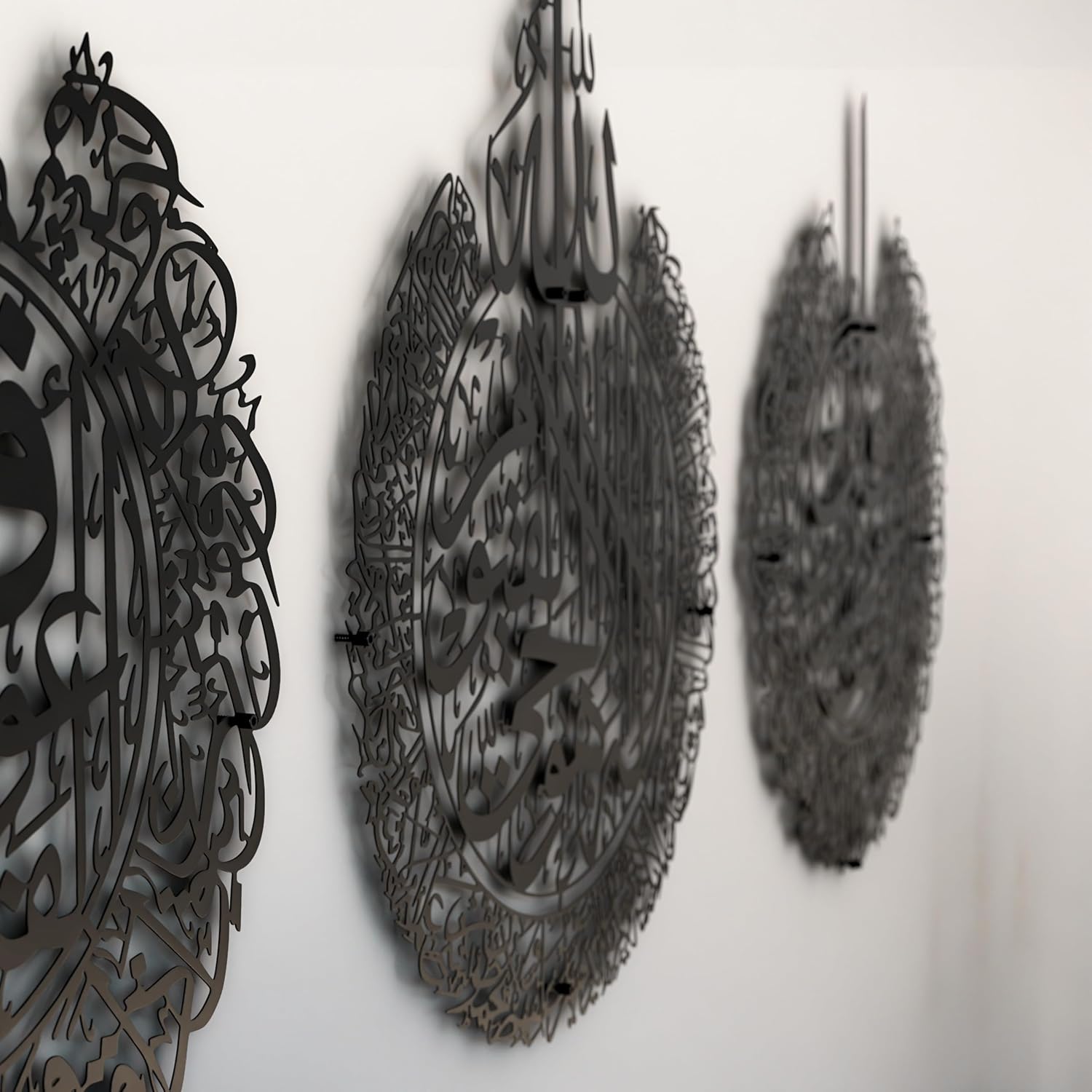 iwa concept Ayatul Kursi, Surah Al Falaq and Surah An Nas Islamic Metal Wall Art, Quran Verse Arabic Calligraphy Decor, Islamic Decorative Gift for Muslims during Ramadan (Black, Large)