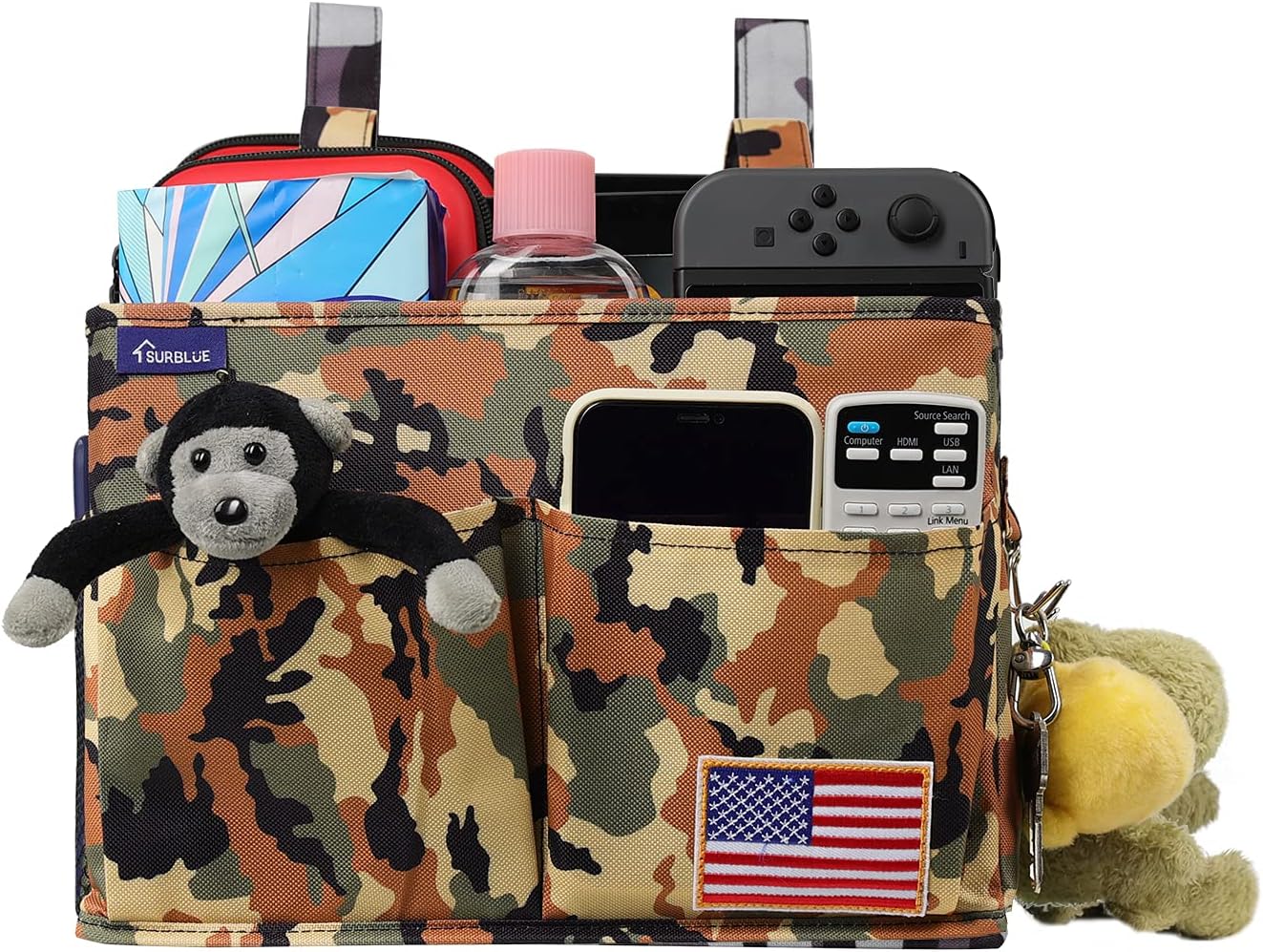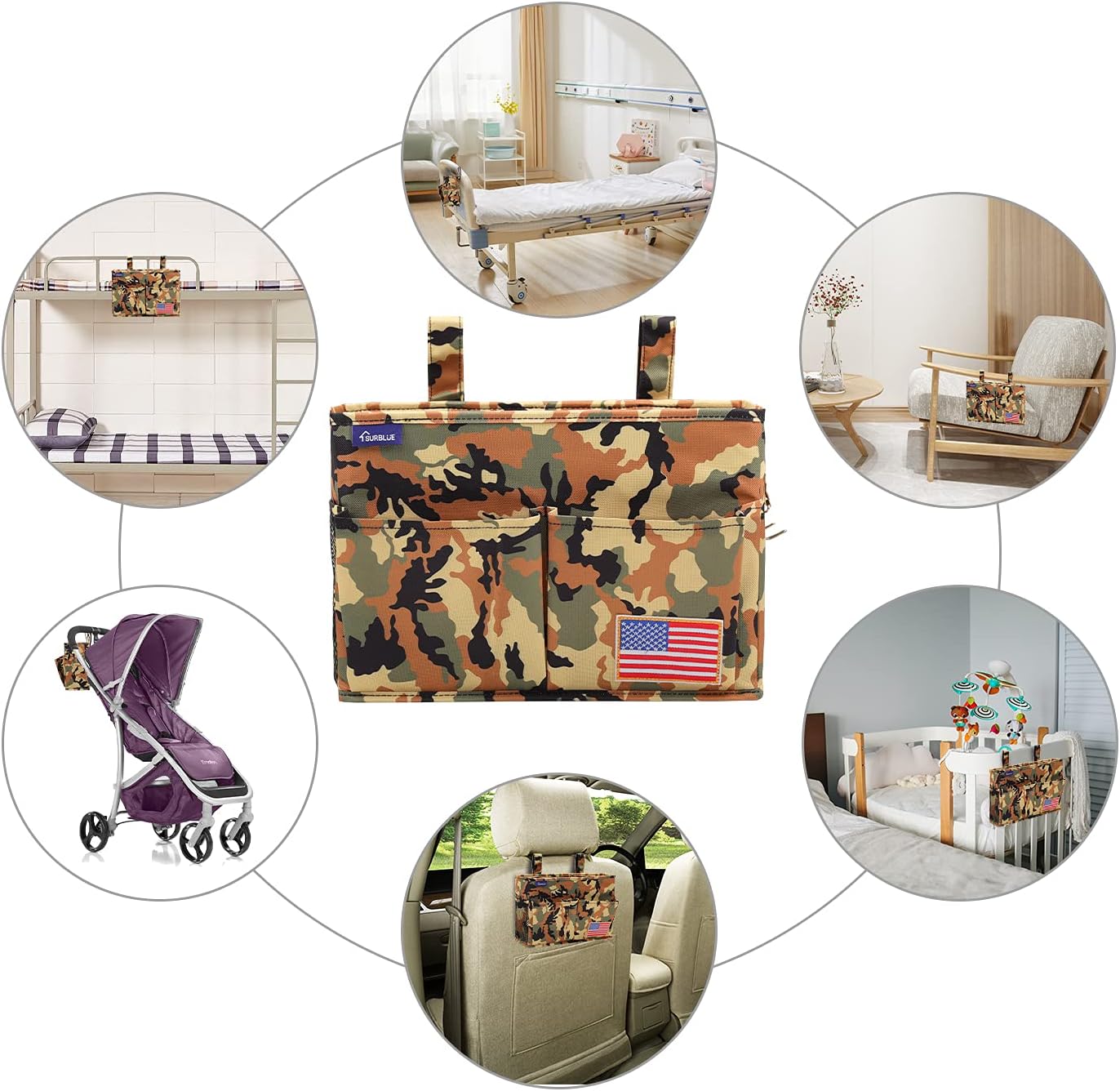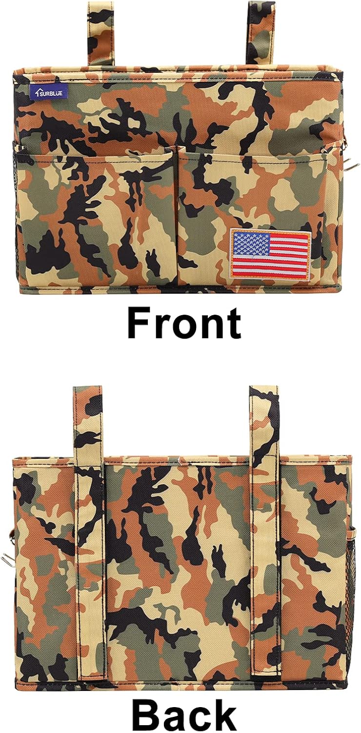 Surblue Bedside Caddy Hanging Organizer Storage Bag Pocket for Bunk, Hospital Beds, College Dorm Rooms, Baby Bed Rails, Wheelchair Side Bag, Camp Chairs, 4 Pockets and 2 Hooks (Small Desert)