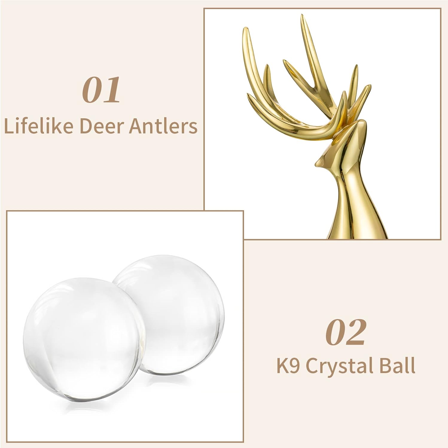 - LIVELIKE DESIGN - With charming color and lifelike posture, each reindeer has a crystal ball on their heads, bringing a sense of luxury and beauty to any scene. The crystal ball can be removed without affecting its aesthetics.