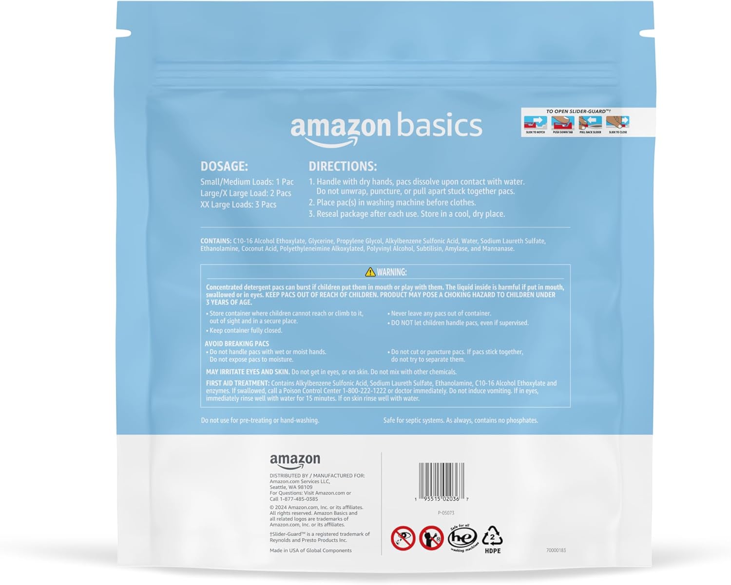 Amazon Basics Laundry Detergent Pacs, Hypoallergenic, Free & Clear, 120 Count (New Packaging)