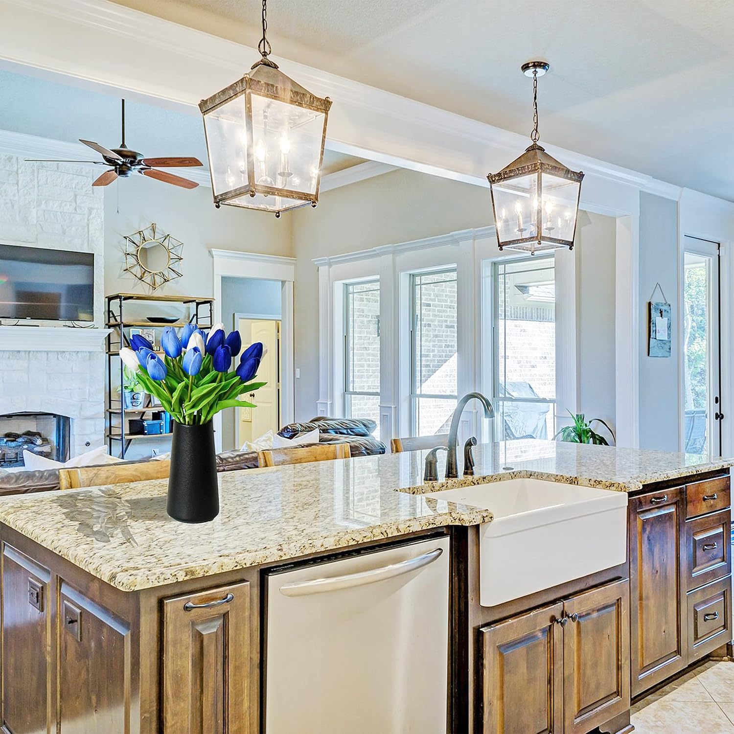 Mandy's Artificial Tulips 20 Stems Shades of Blue PU Faux Flowers for Wedding Home Decor 13.5 Inch