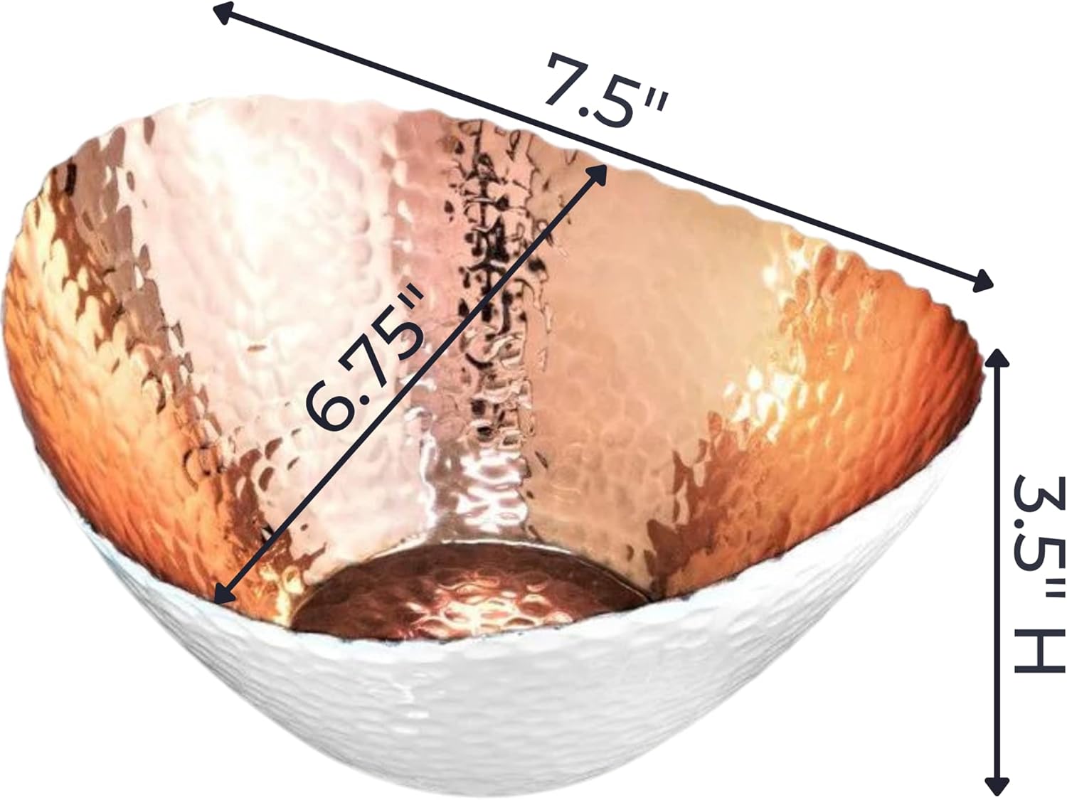 - PREMIUM QUALITY CONSTRUCTION: Crafted from durable metal with a luxurious white and copper plating, this decorative bowl features a hand-hammered texture inside and out. Protected with a food-grade lacquer, this key holder bowl resists rust and is built to last with everyday use. The solid aluminum construction ensures these bowls are rust-resistant, making them durable and long-lasting. Ideal for serving snacks, nuts, or holding small trinkets.