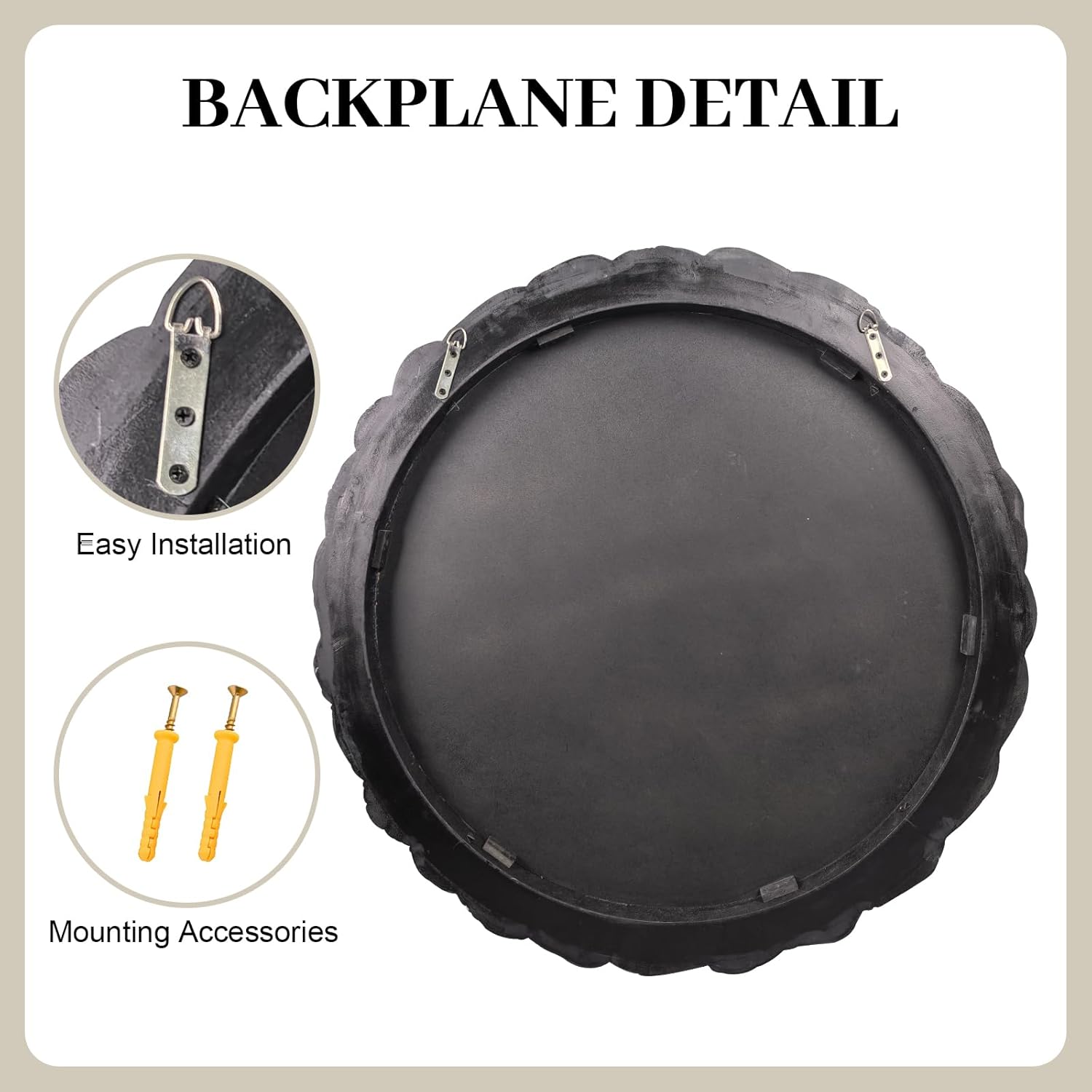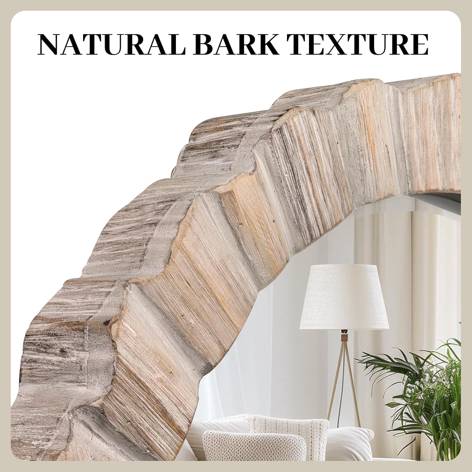 - WALL DECOR: Tired of staring at that pesky blank space on your wall in the living room or bedroom? Rustic and chic, our round wood round wall mirror opens up your space with on-trend shapes and a choice of finishes to reflect your style. The bark finish surround the gleaming mirror, with a noticeable deep texture, creating a stunning wall accent.