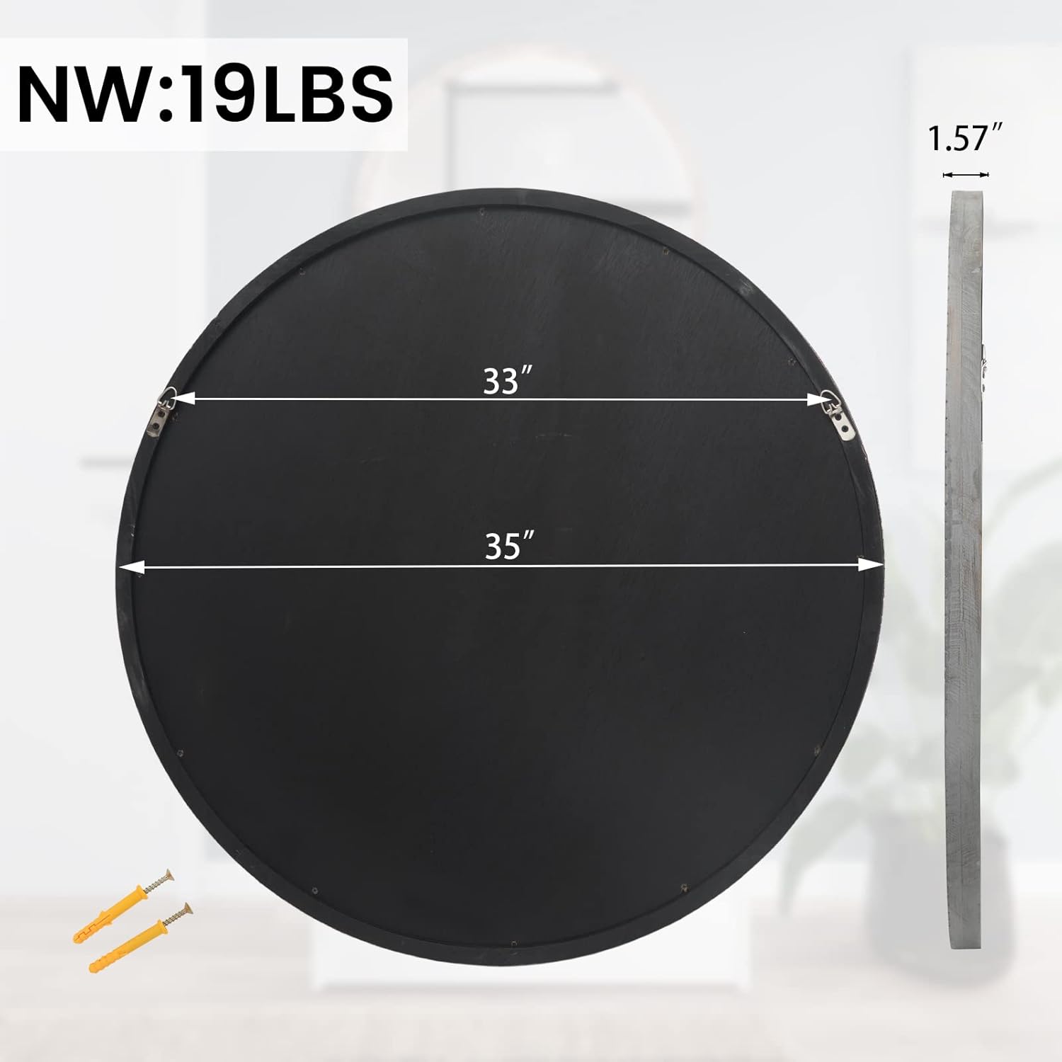 - NATURAL HOME DECOR: The element design of this round mirror 35 inches allows it to be integrated into any place and can add retro style to your home decoration. It can be used as a living room mirror, bedroom mirror, entryway mirror, or farmhouse wall decor. Provide a simple visual appeal to your room and be the perfect focal point for the entire room.