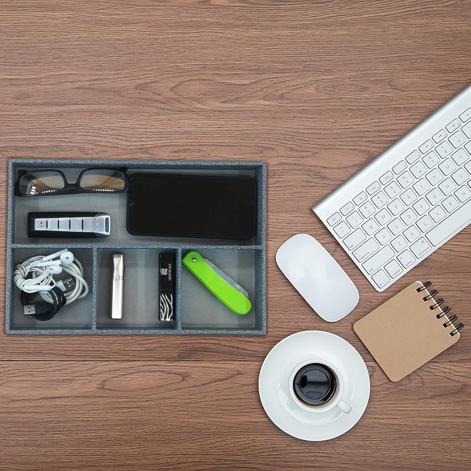 - [Storage tray] This 4-compartment tray can store mobile phones, watches, glasses, money, wallets, coins, keys, jewelry, etc., suitable for bedrooms, offices, halls, dressing tables, bedside tables, desktops, etc.