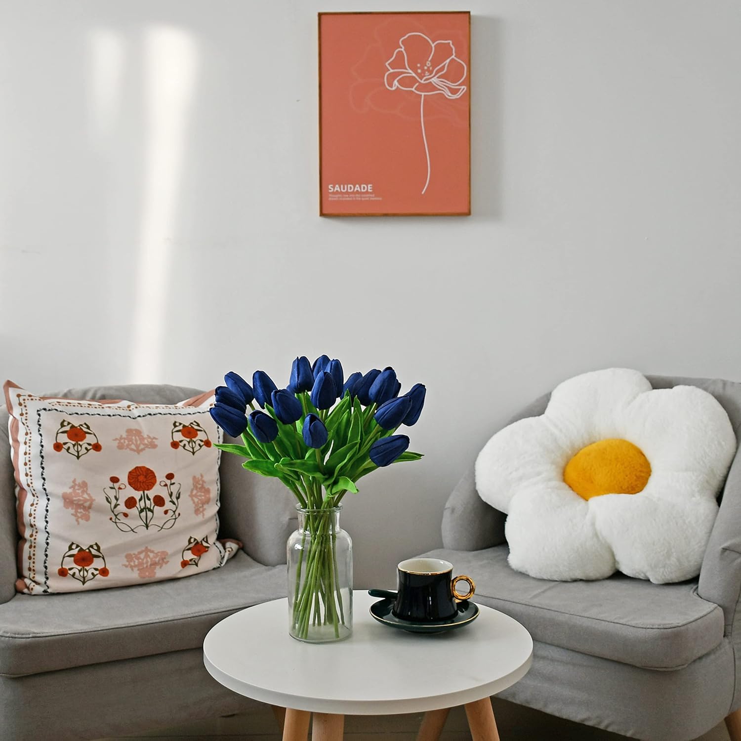 - All-Season Beauty with Gentle Color Care.These tulips bring timeless charm to Easter, Mother’s Day, weddings, or year-round décor. To preserve the soft tones of light-colored flowers—especially white—we recommend avoiding direct sunlight for long-term (6+ months) display, as PU petals may naturally yellow over time.