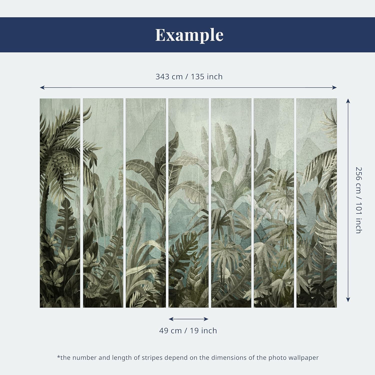 - Overall Size: Approximately 135x101 inches (343x256 cm WxH) seven strips; self-adhesive wallpaper provides a seamless finish; image is scaled to match the chosen size, enhancing any room's decor