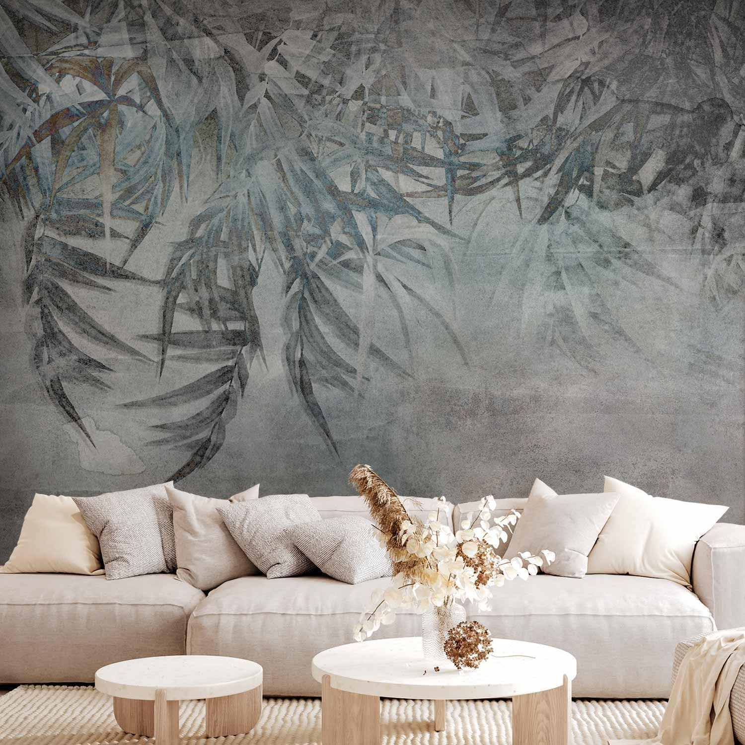 artgeist Wall Mural Leaves 173x124 in - Peel and Stick Self-Adhesive Wallpaper Removable Large Sticker Foil Wall Decor Print Picture Image Design Palm Leaves Concrete Nature Grey b-C-10103-a-a