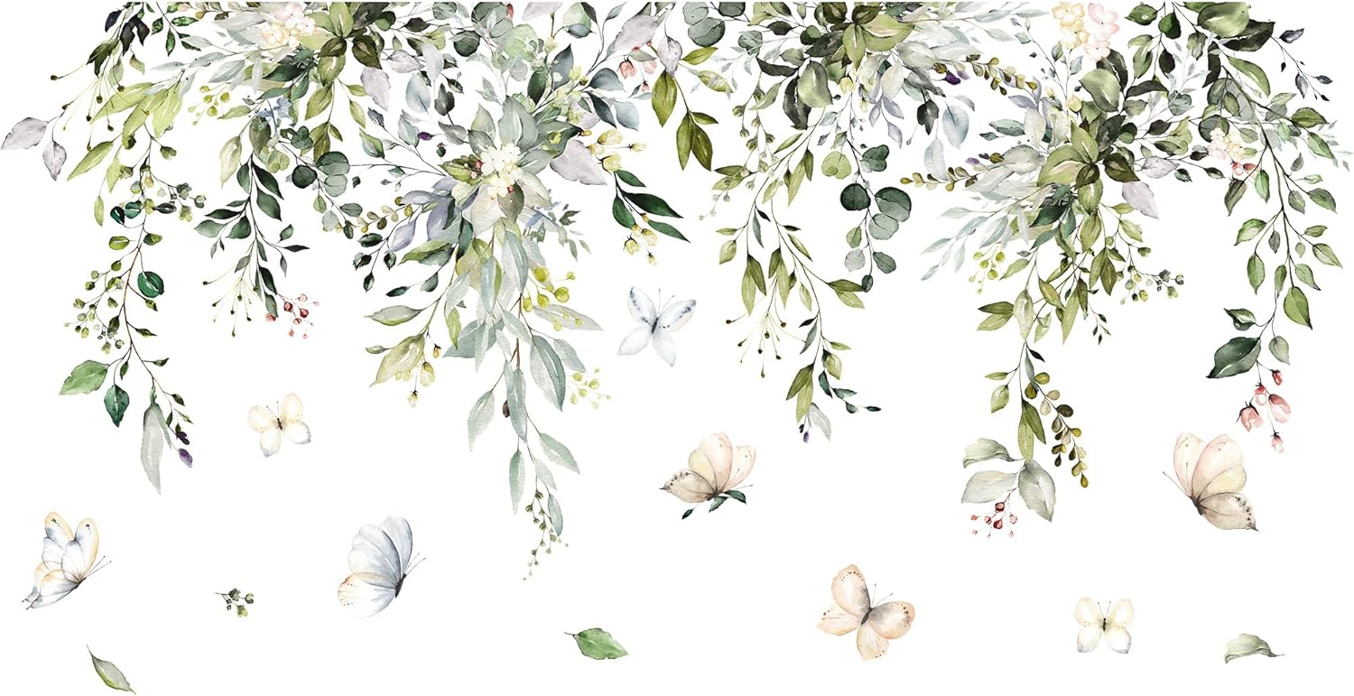 - The green vine decals on the wall is really great decorations for any smooth wall or window decorations, holiday party supplies. Add some color to your room, create a cute and lively atmosphere. Finished Size: 45.3β x 32.3β / 115cm x 59cm. This green vine leaf wall decals include 2 sheets. Each size: 12β x 36β / 30cm x 90cm.