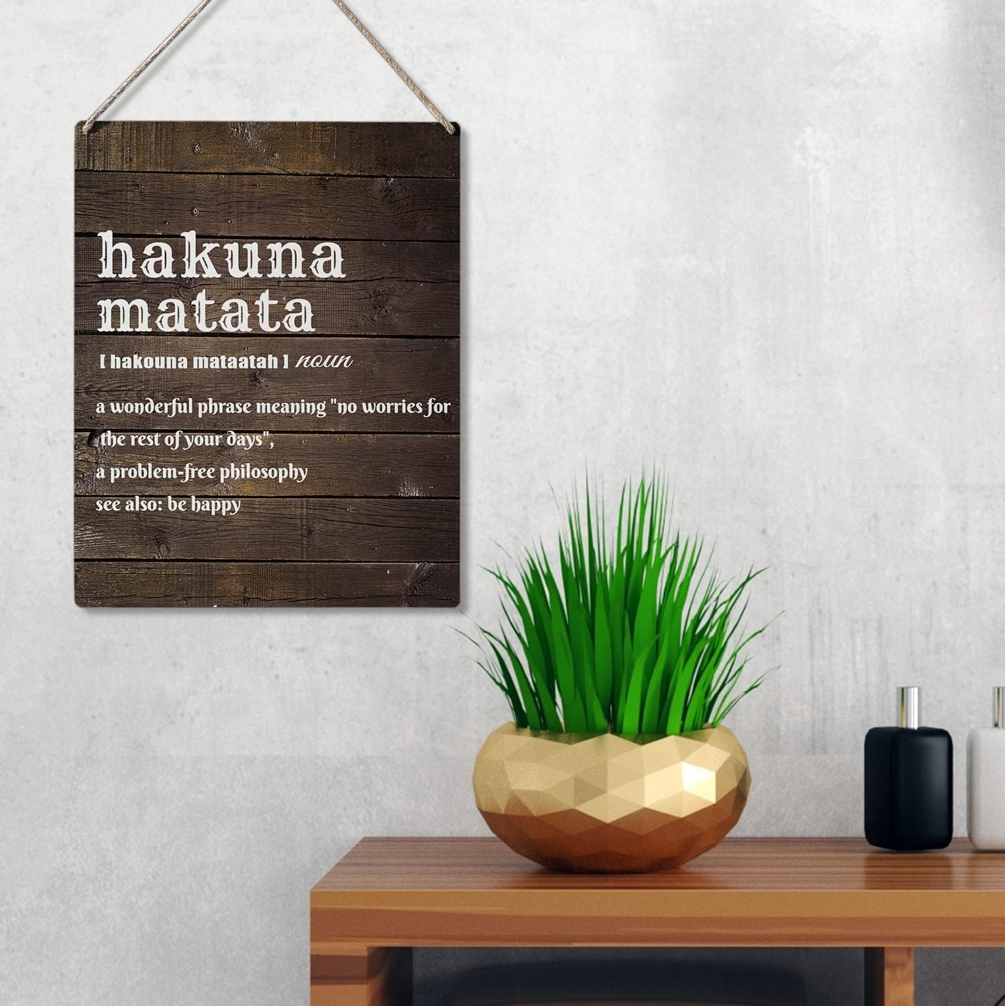 Qious Inspirational Gift Signs Hakuna Matata a Wonderful Phrase Meaning No Worries for the Rest of Your Days Wooden Hanging Sign Rustic Wall Art Home Decoration 10 x 8 Inches…