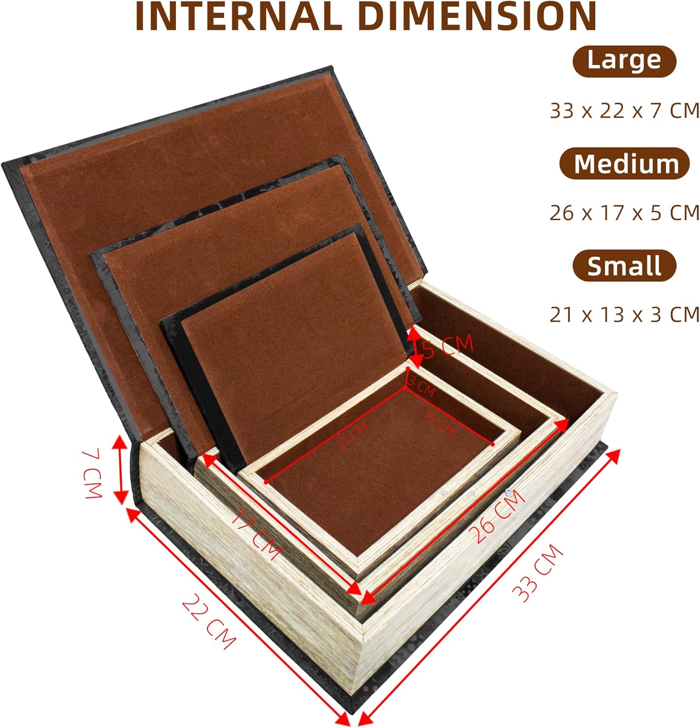 - The inside of this book box has a delicate plush lining and comes in three sizes, ideal for storing items of different sizes, such as jewelry, glasses, Christmas gift cards, photos, letters, etc
