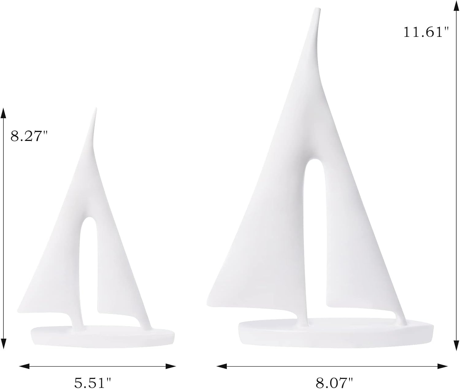 - RESIN MATERIAL & SIZE: Hand-made with high-quality resin, this modern sculptures home decor is not only exquisite in appearance, but also environmentally friendly, tasteless, non-toxic and harmless. The surface is smooth and durable, making it a perfect complement to any home. The size of the larger sailboat ornament: 8.07x2.16x11.6 inch, the smaller sailboat: 5.51x1.57x 8.27 inch.