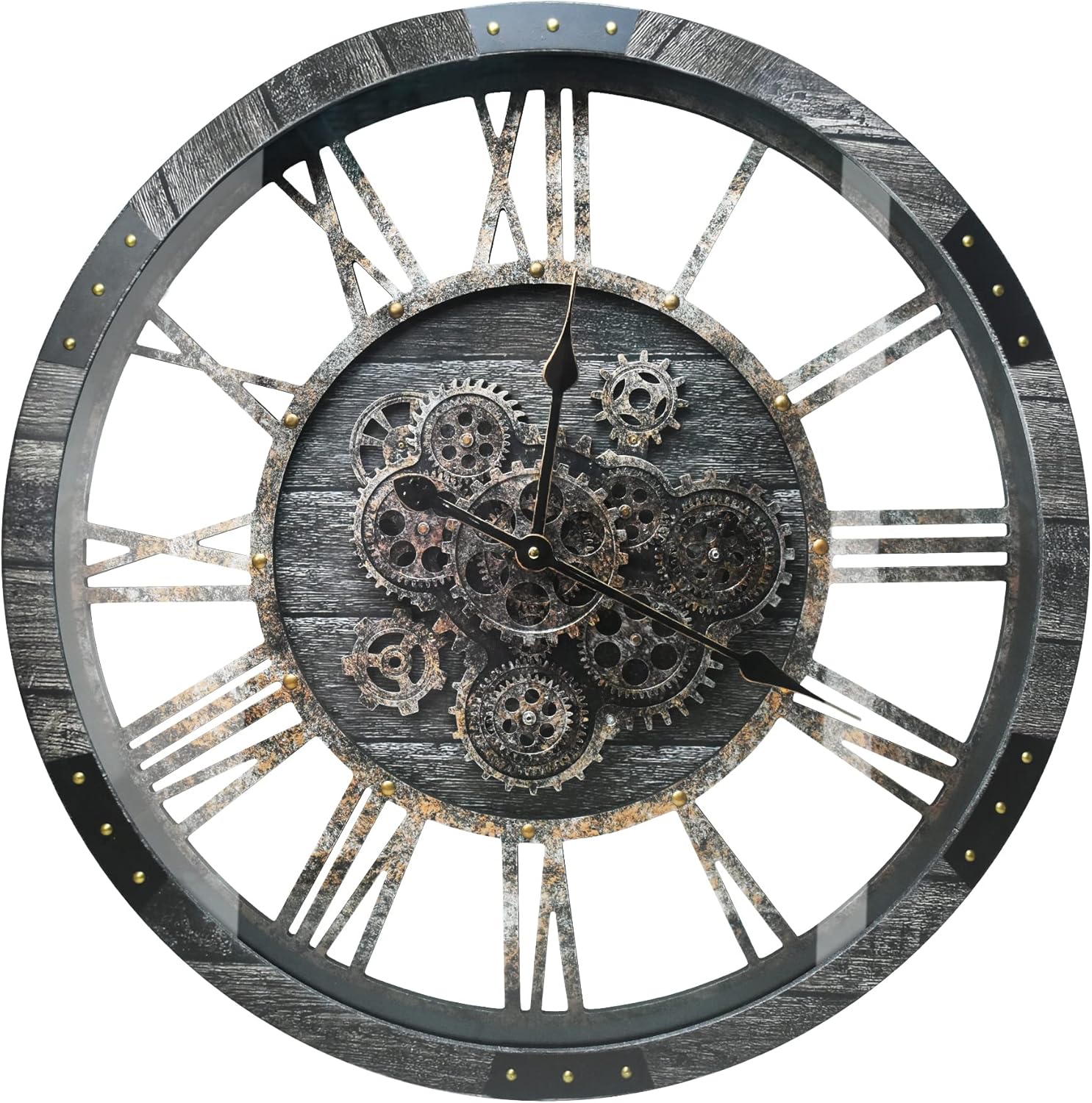 - 🧭【Unique Design, Only For Your Home】 Round solid Wood frame and classic retro metal skeleton with real mechanical moving gears in the central, the wooden frame is handcraft, showing unique attractive wood grain color and small natural knots; fake rust treatment marks on the metal skeleton for vintage and industrial effect; stronger tempered glass resists any breakage and keeps safety whenever;; The design is very different from other clocks, just to break the ordinary, only for your home