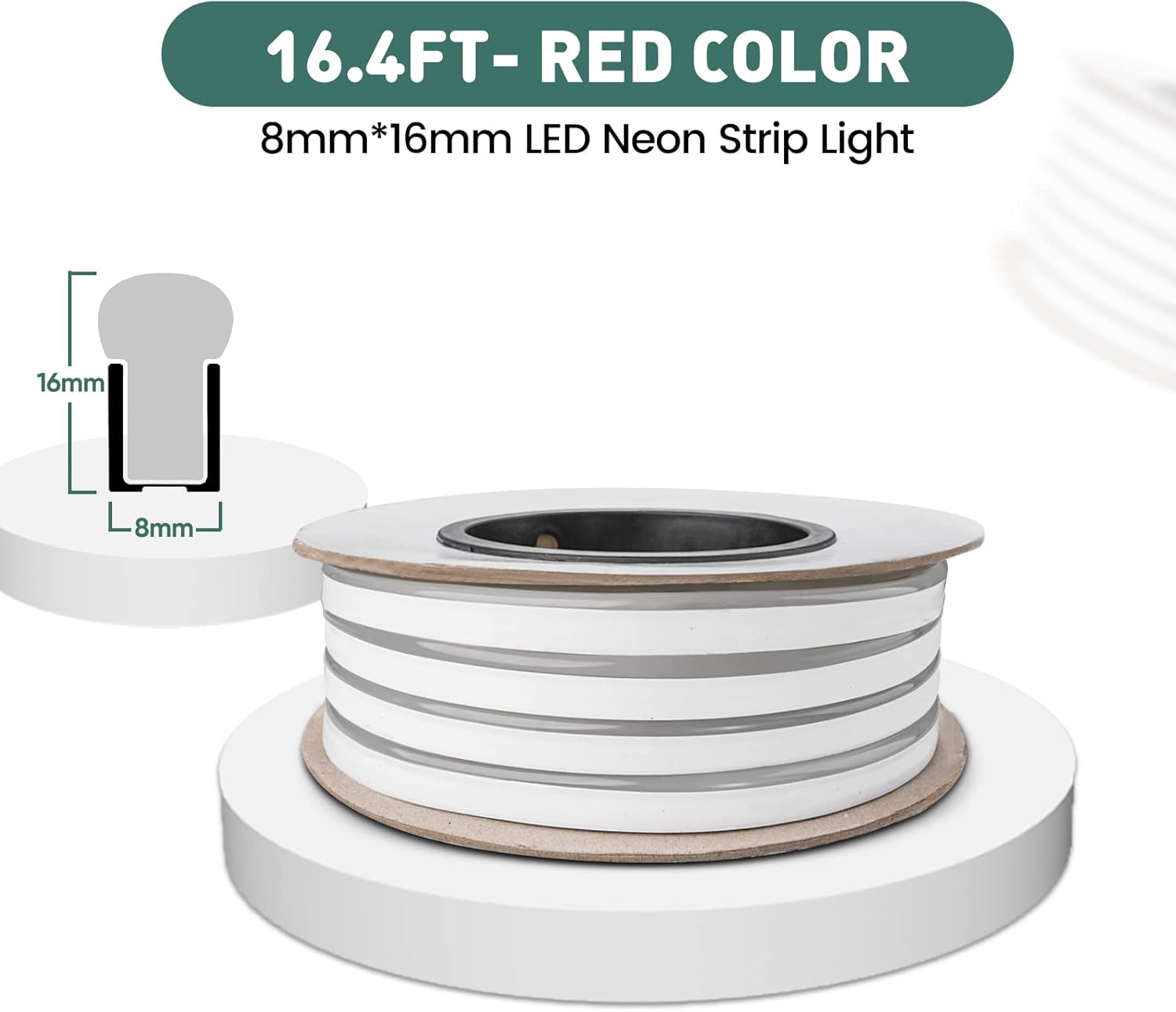 GZBtech Flexible LED Neon Rope Lights 16.4FT,AC 110-120V Waterproof Strip Light, 120LEDs/M Cuttable Connectable Neon Lighting for Indoor Outdoor Home Decor/Commercial Building Use-Red 5M