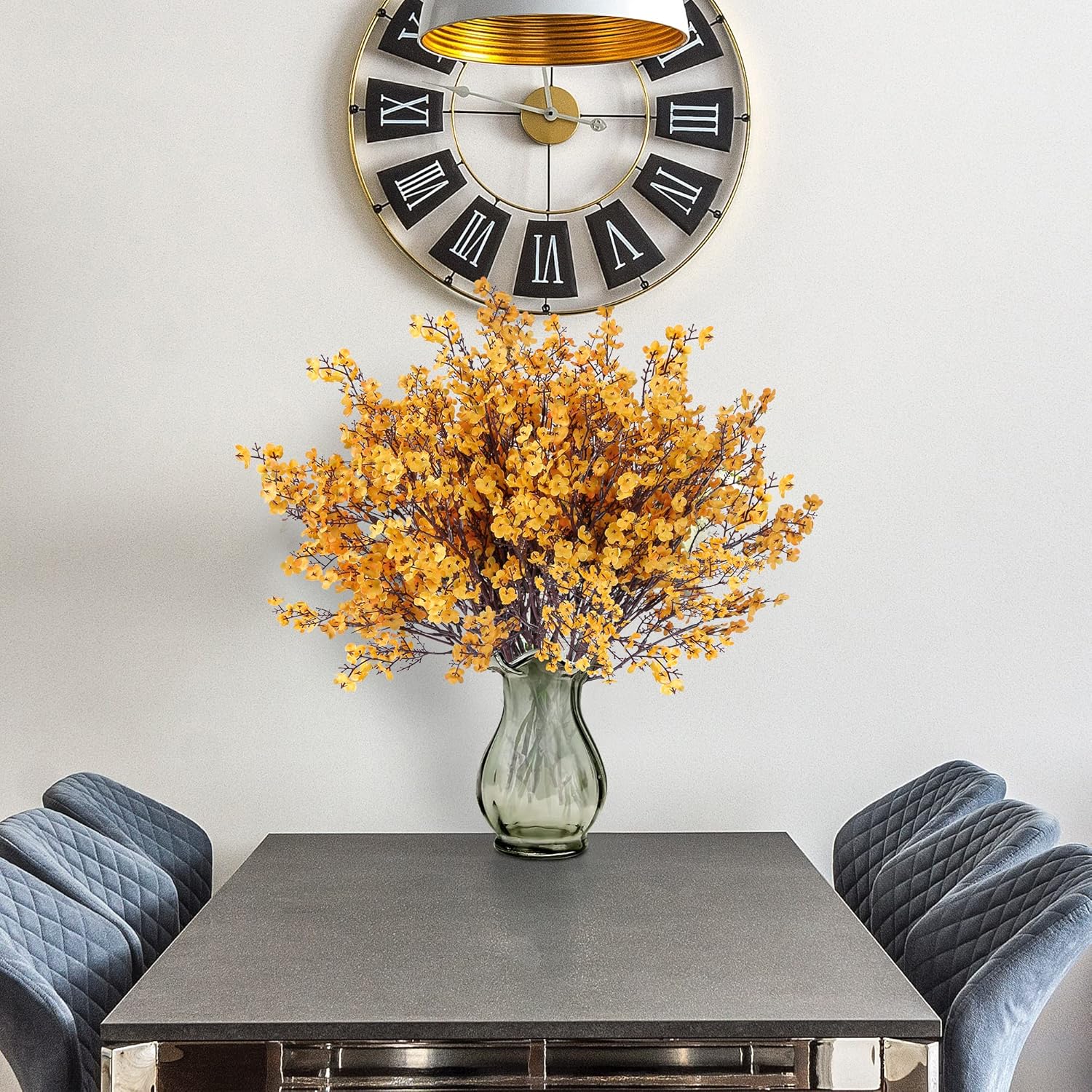Sggvecsy 15 Pcs Babys Breath Artificial Flowers Gypsophila Bouquets Real Touch Fake Silk Flowers for Home Wedding DIY Floral Arrangement Table Centerpiece Thanksgiving Autumn Decoration (Orange)