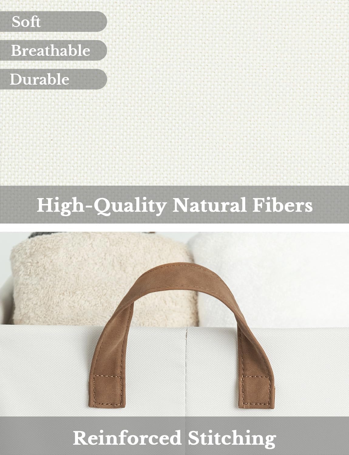 StorageWorks 45L Extra Large Fabric Storage Bins with PU Handles, Storage Baskets for Organizing, Large Laundry Basket, 2-Pack, Beige, 19" L X 13.25" W X 11" H