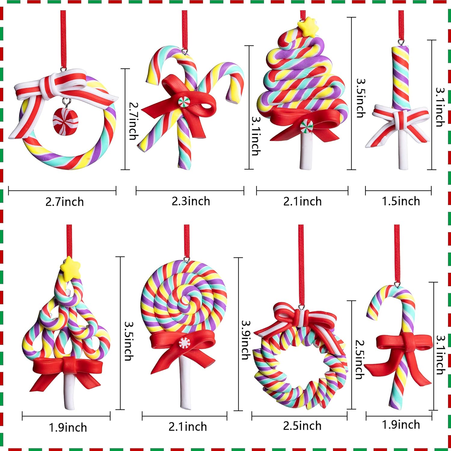 - Easy to use:Every Christmas lollipop polymer clay ornament is equipped with a red ribbon, light weight, you can easily hang them where you want to decorate.Bring you a different visual experience.