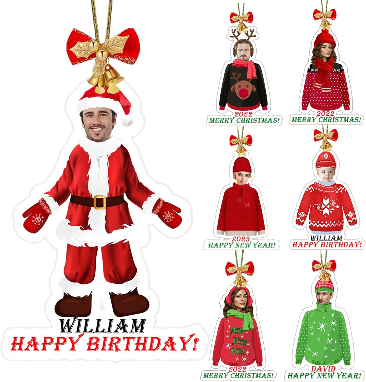 - Customized Christmas ornament - Please upload a clear and frontal full-face photo by clicking the "Customize Now" button, then enter your blessing and make it a personalized Christmas ornament. There are multiple cartoon templates for your family member in the customization option.