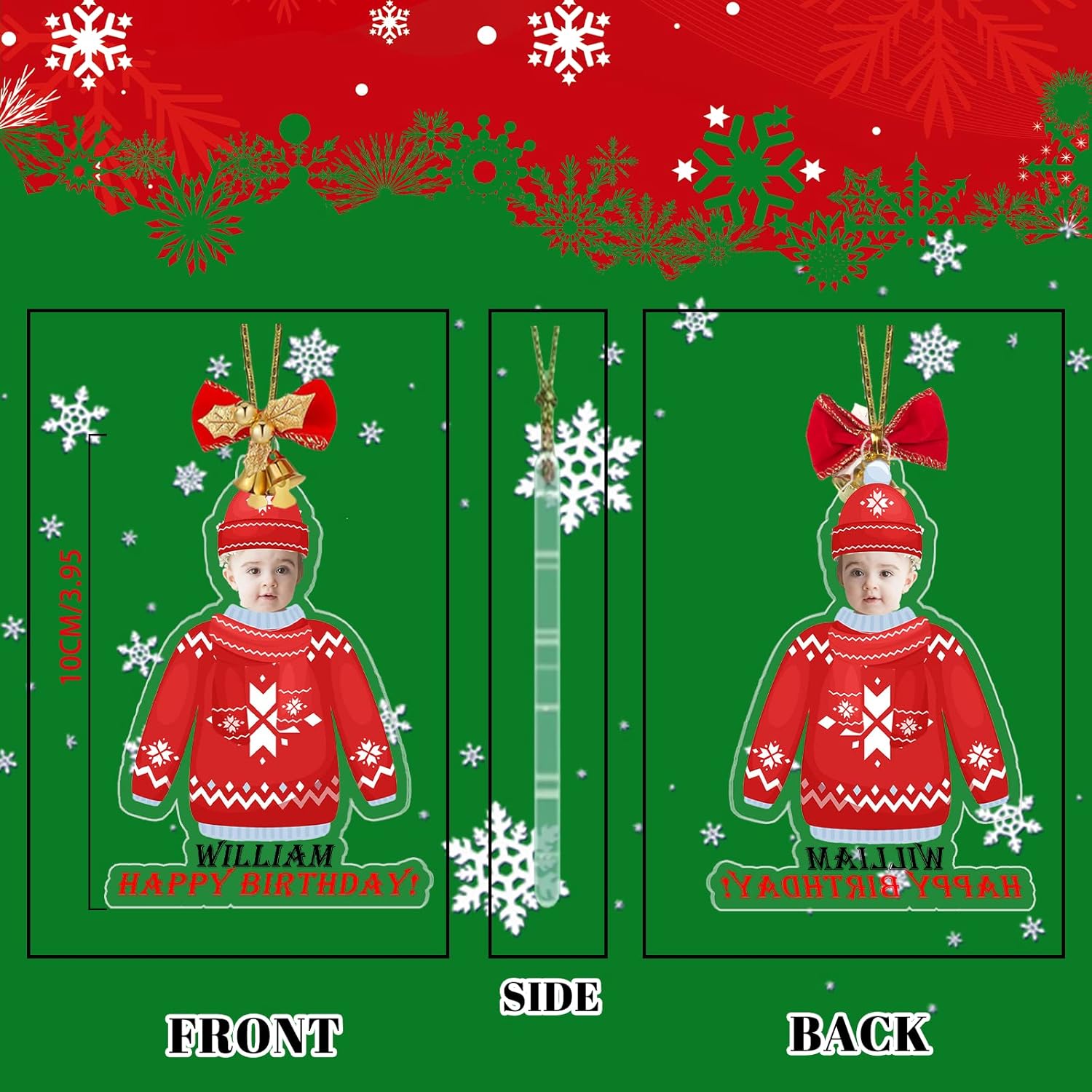 - Delicate and Festive β These custom Christmas ornaments measure 3.94inch in length and craft with festive details, vibrant colors, and your personalized photo. They will make your Christmas decorations indoors feel extra special and unique.