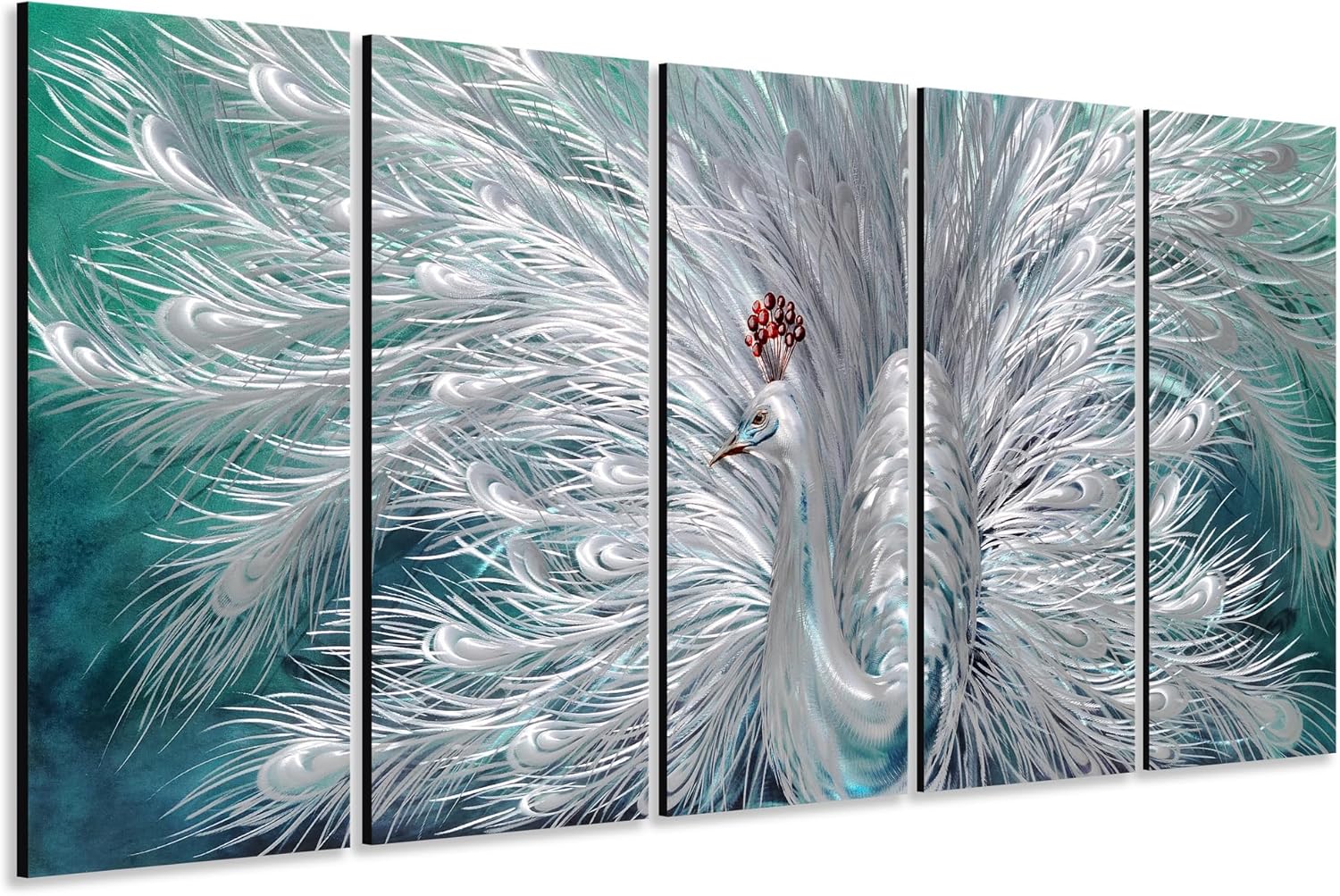 - Peacock Metal Wall Art: 32x12INx5 Panels (32x64IN, 80x150CM)
