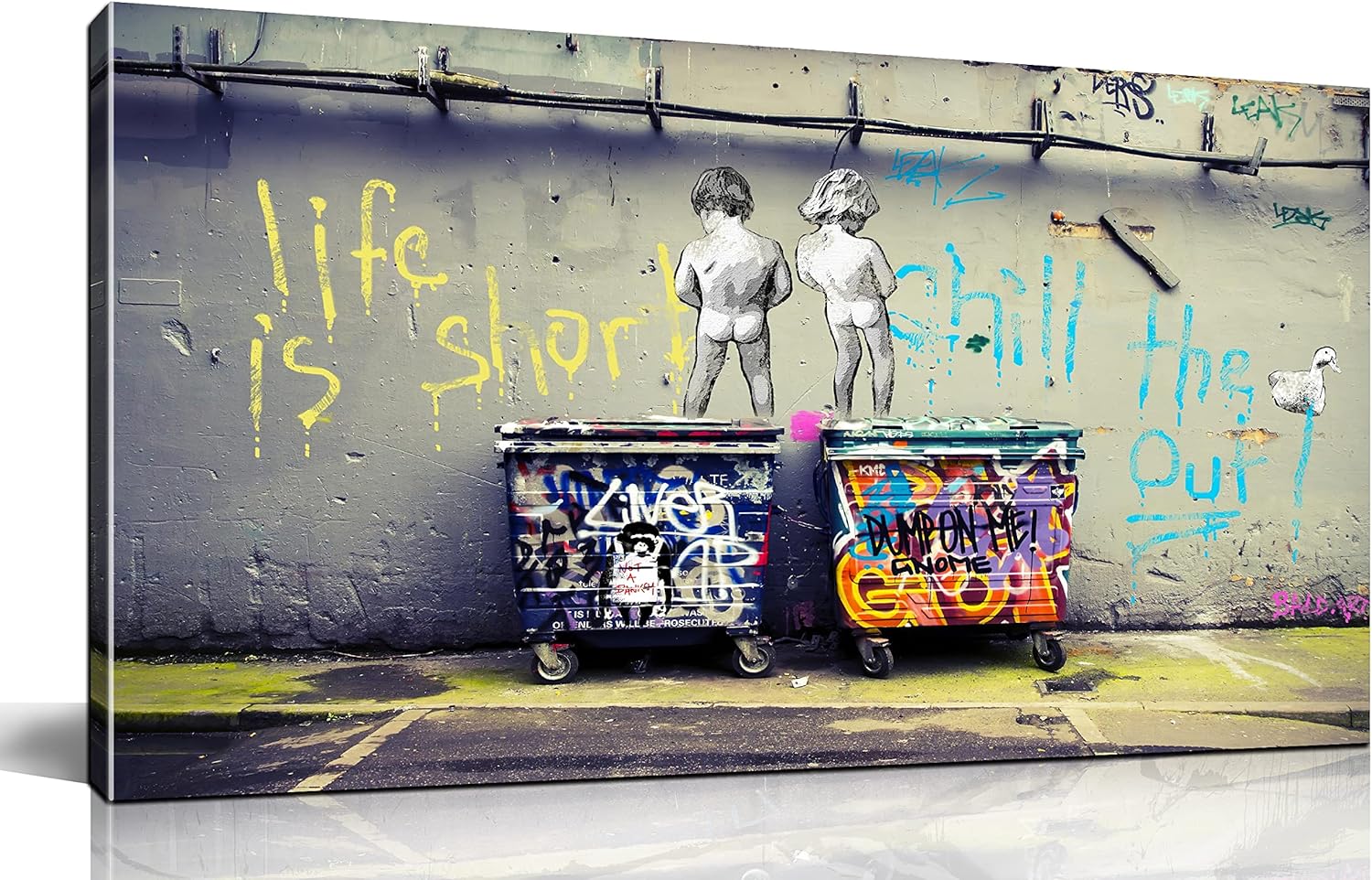 - 【EASY TO HANG】 Each panel of canvas prints already stretched on solid wooden frames, gallery wrapped, lightweight,ready to hang. The side margins are also printed to create a particularly decorative effect.Banksy street art graffiti canvas wall decor.Added color and fun to your bedroom, living room,office, dormitory or apartment.